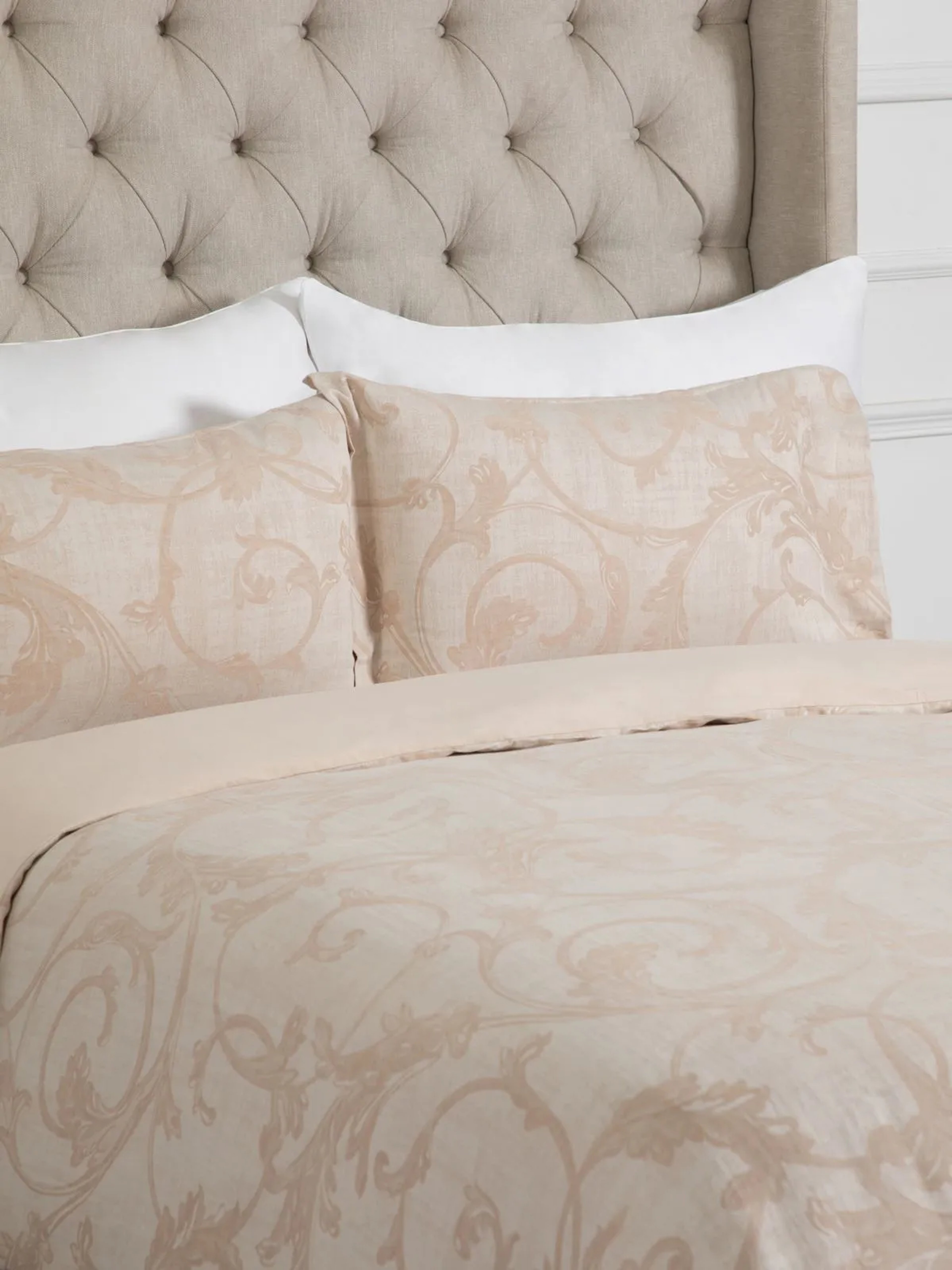 Delicate arches and stylized tile prints, with opulent stitching and round piping.
