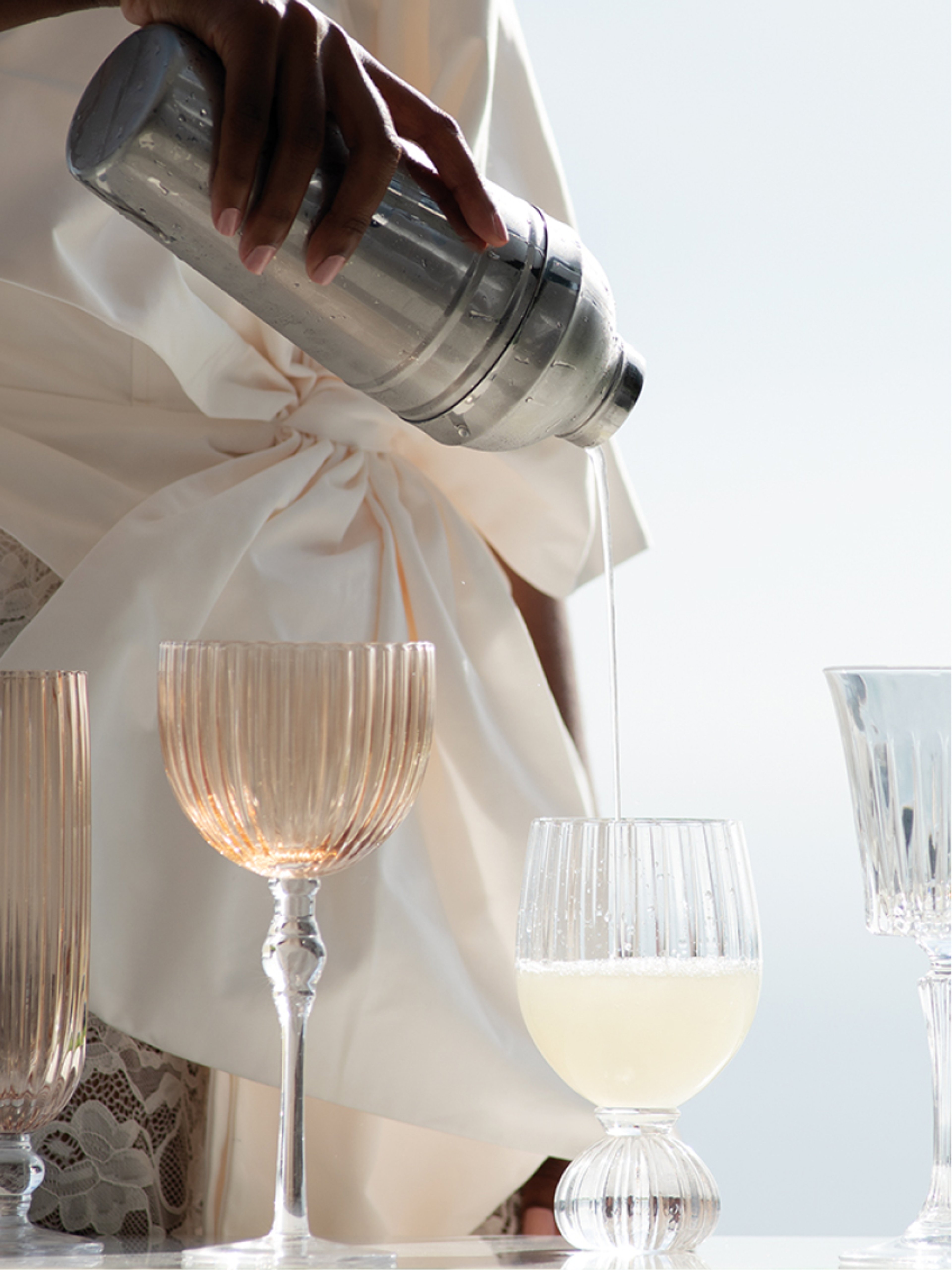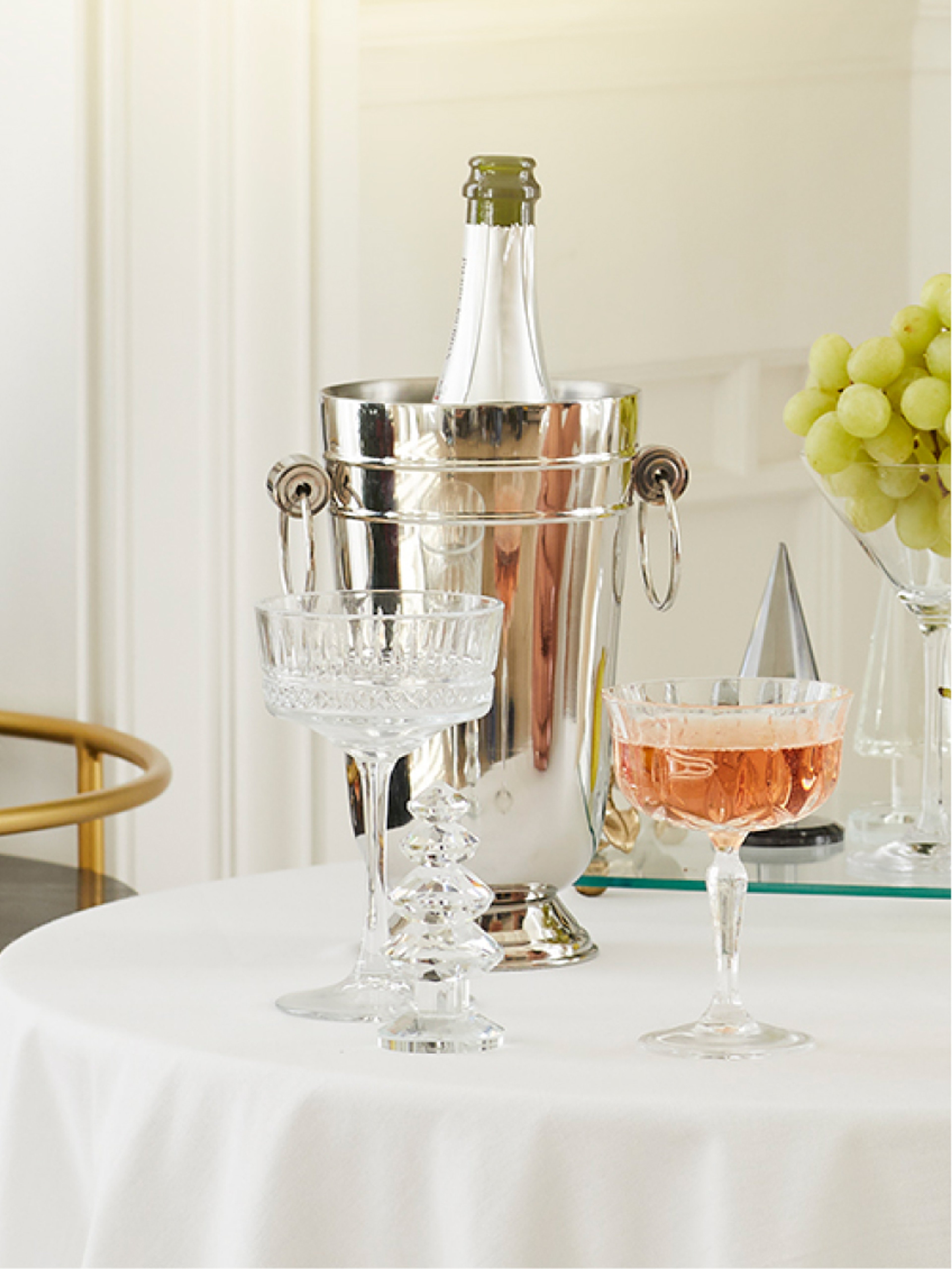 As evening settles, drinks become part of the ritual. Crystal glassware, considered bar tools, and sculptural ice buckets invite unhurried pours and lingering conversations.