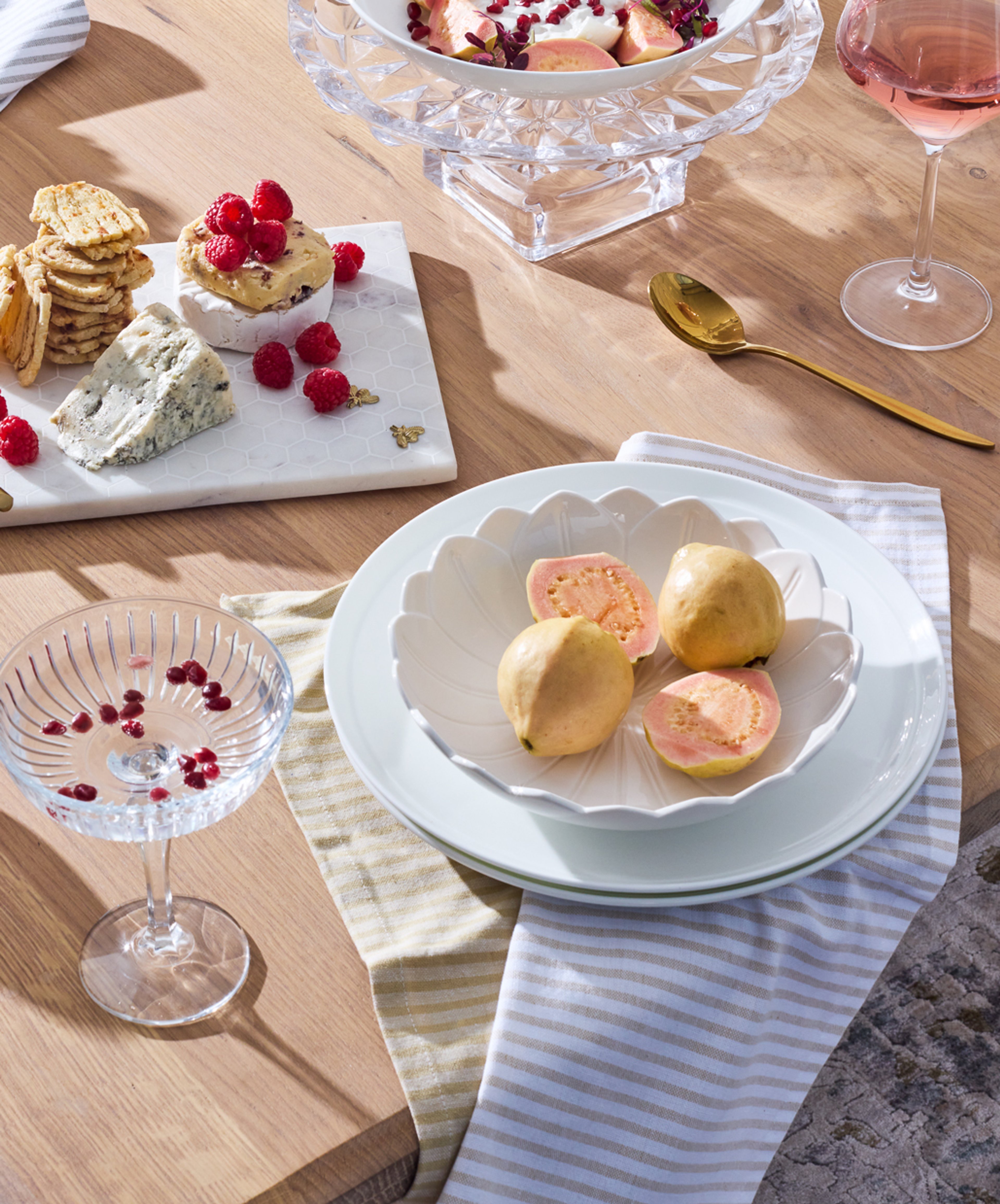 Channel Provençal charm with linen napkins, woven textures, and soft neutral tones, then add Riviera polish with chic glassware and crisp white tableware. The new Sur La Table collection of crockery and glassware is the perfect finishing touch to your resort-style dining from home.