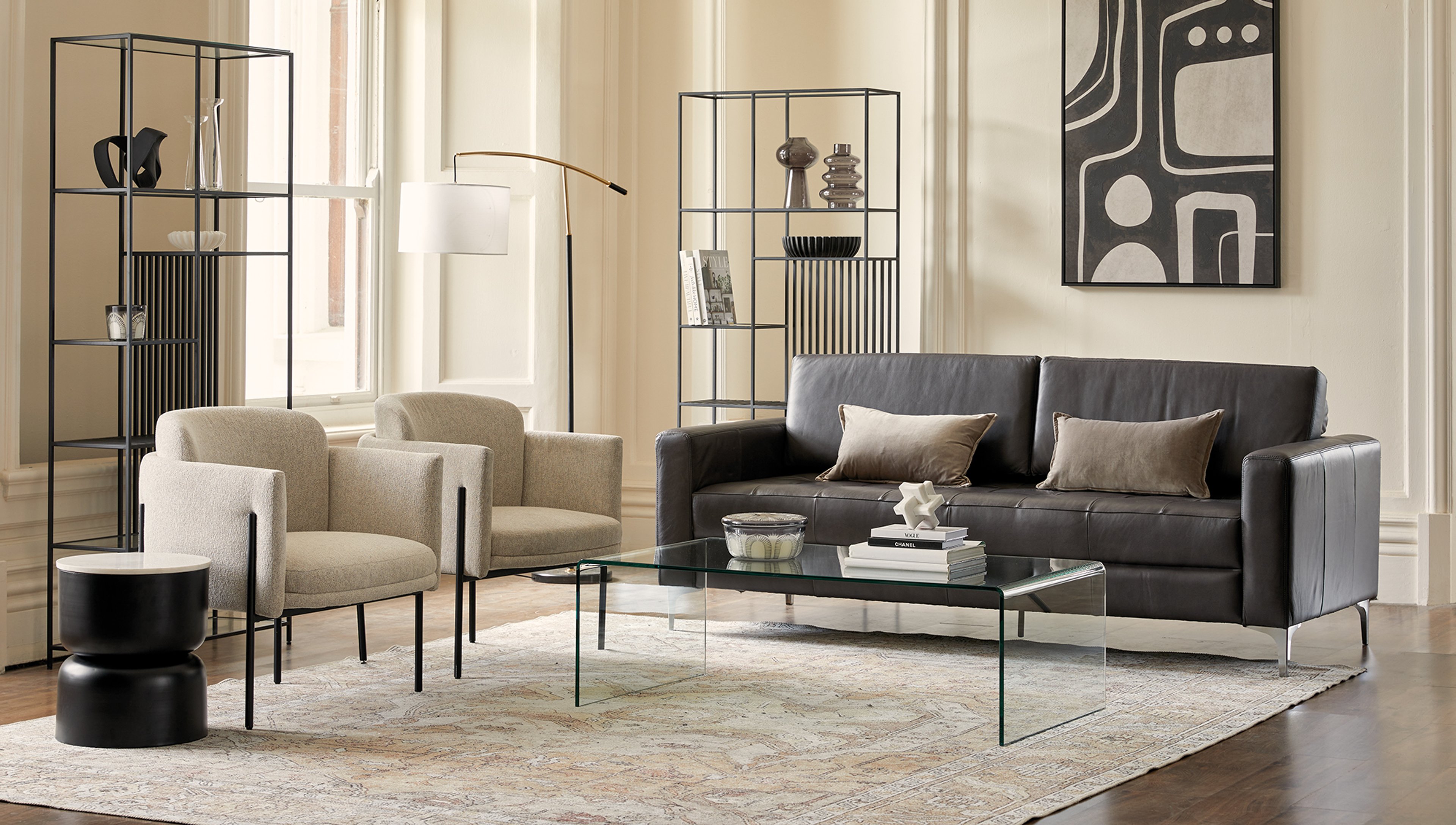 Styling tip: Choose one key piece as the focal point for your lounge or living space. A 3-seater leather sofa can be styled with single velvet seaters to bring in a mix of textures, fabrics and styles.