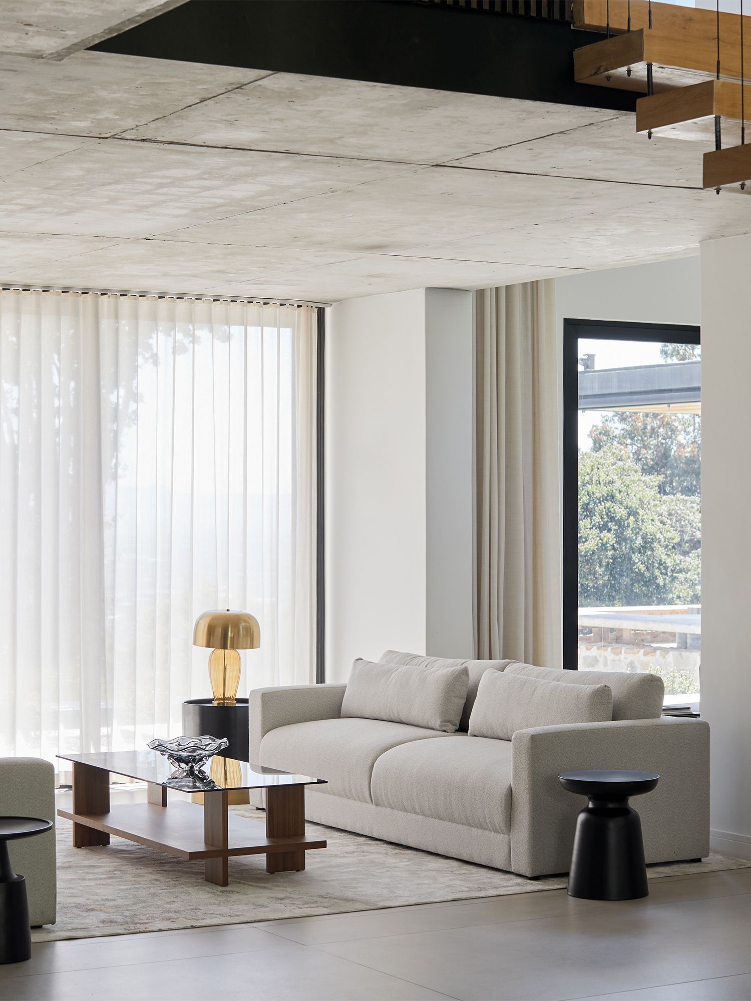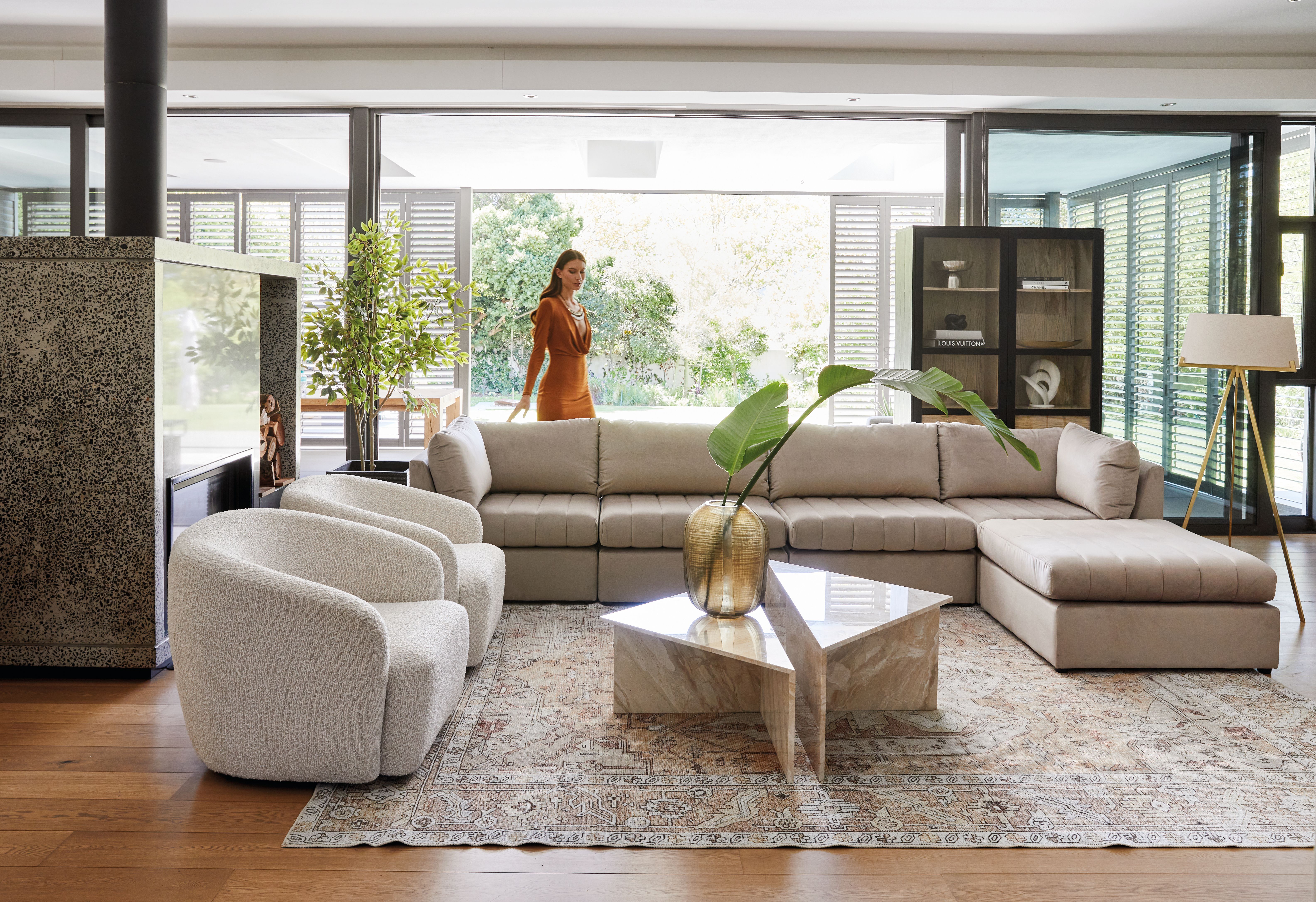 A curved couch, enveloping armchair, or richly toned ottoman can ground your space and anchor your winter styling. Add scatter cushions in tonal shades of blue, charcoal, or ivory for a layered, elevated look that still feels relaxed.