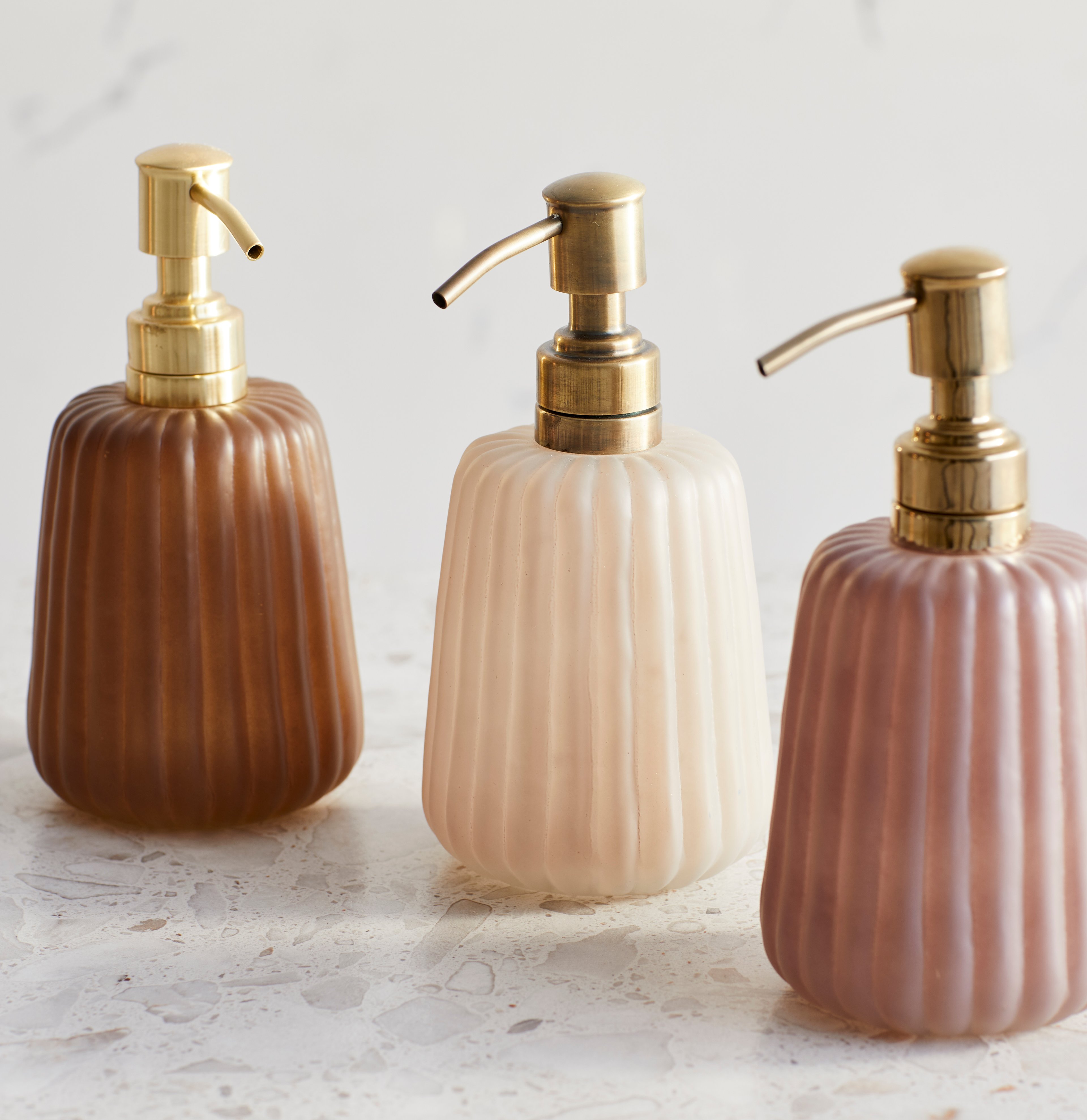 Contain shampoo, soap and hand creams in an aesthetically pleasing way with your choice of soap dispenser, pair it with matching items in a set like a soap dish, brush holder and tumbler.