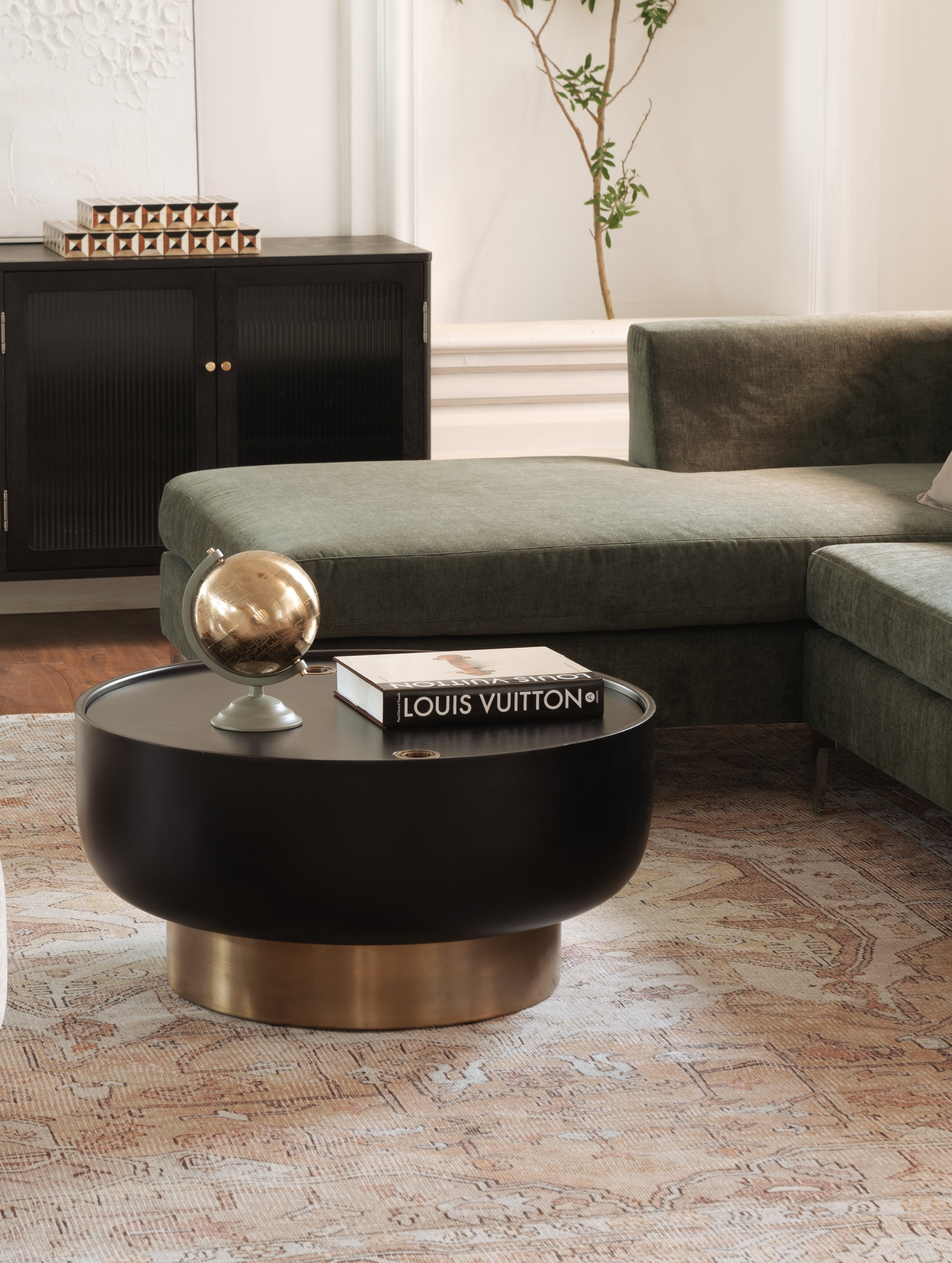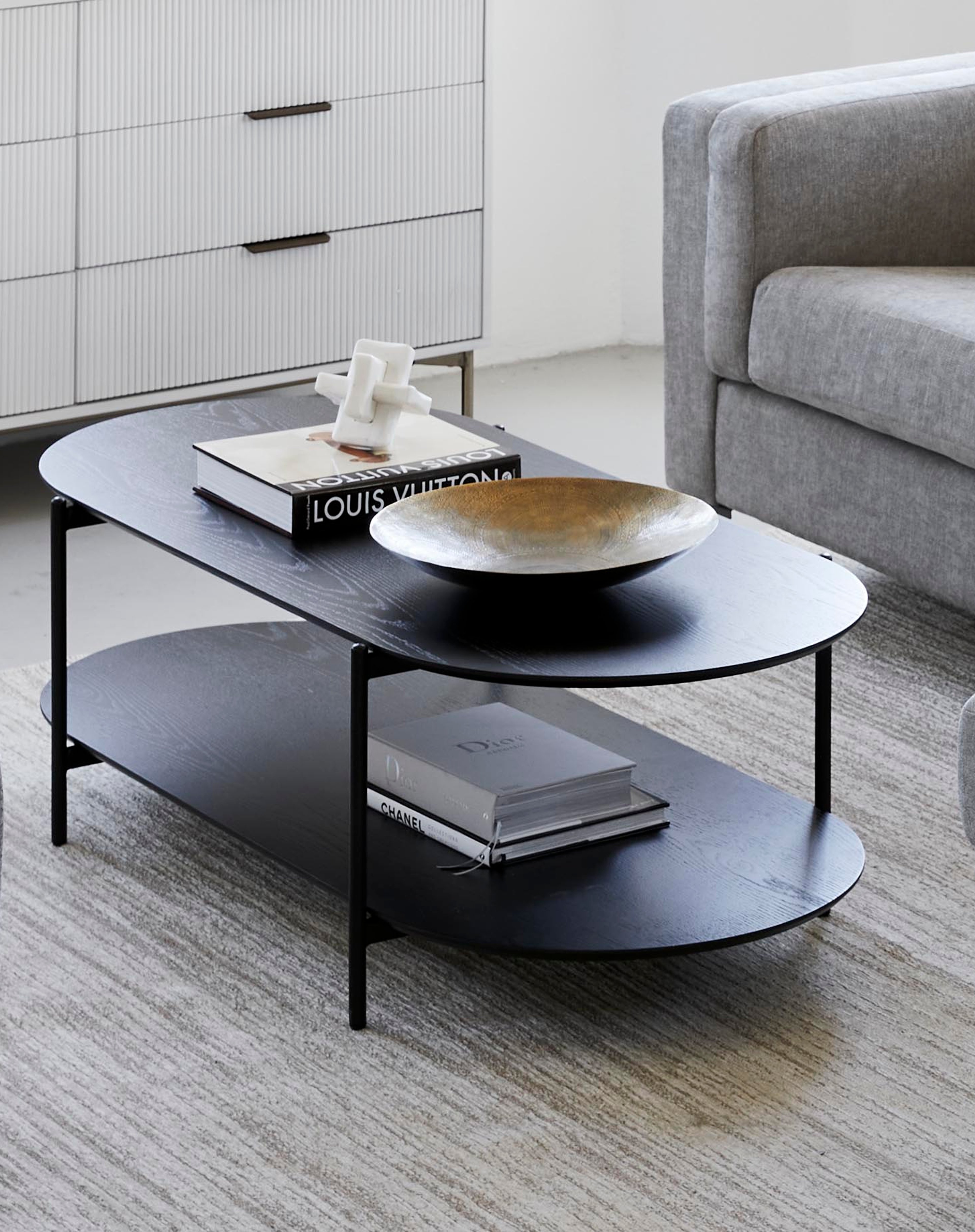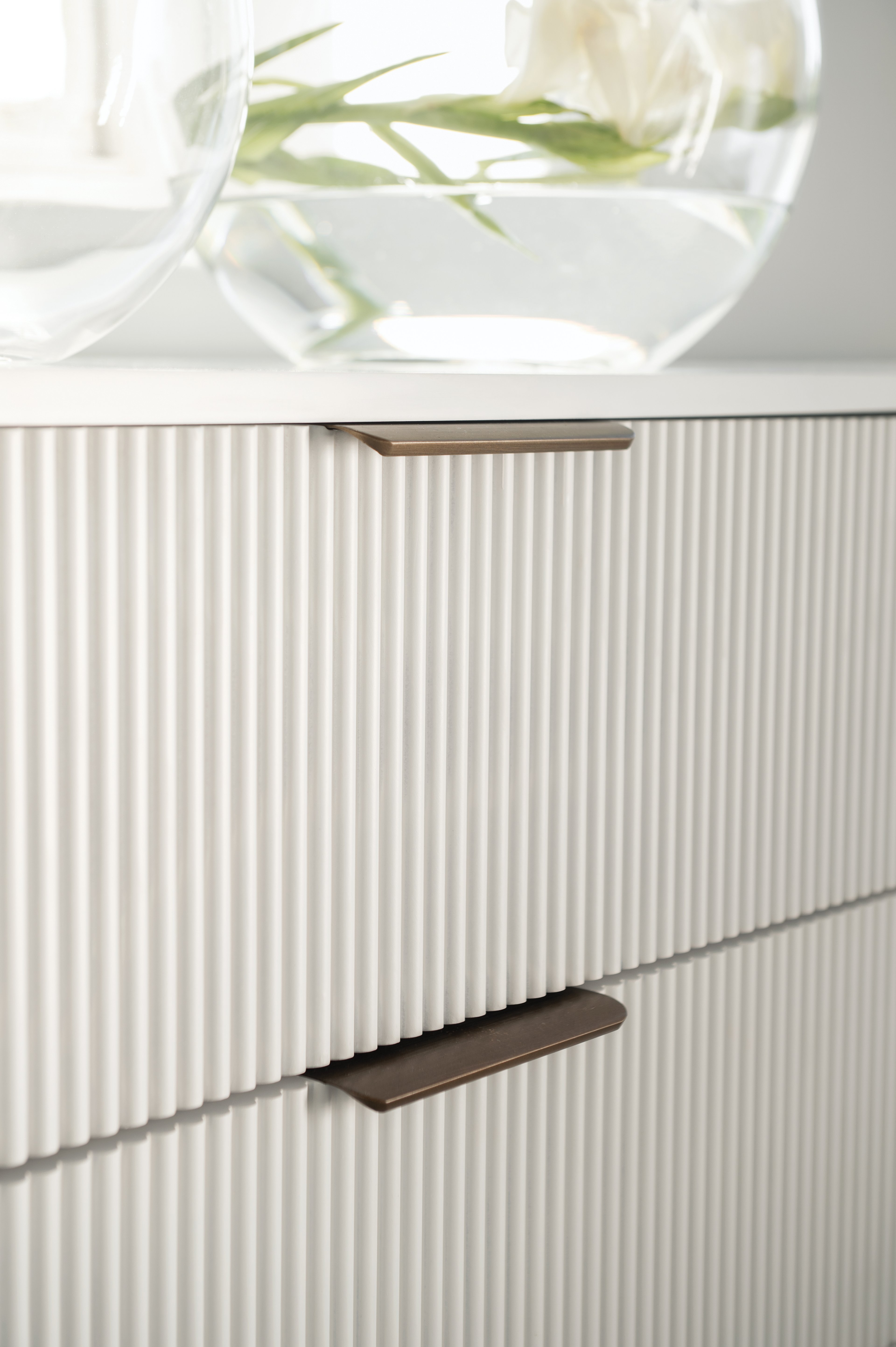 The Aura storage range brings an elegant sophistication to your living space with its modern style. Fluted detailing and metallic hardware add a luxe feel to each piece.