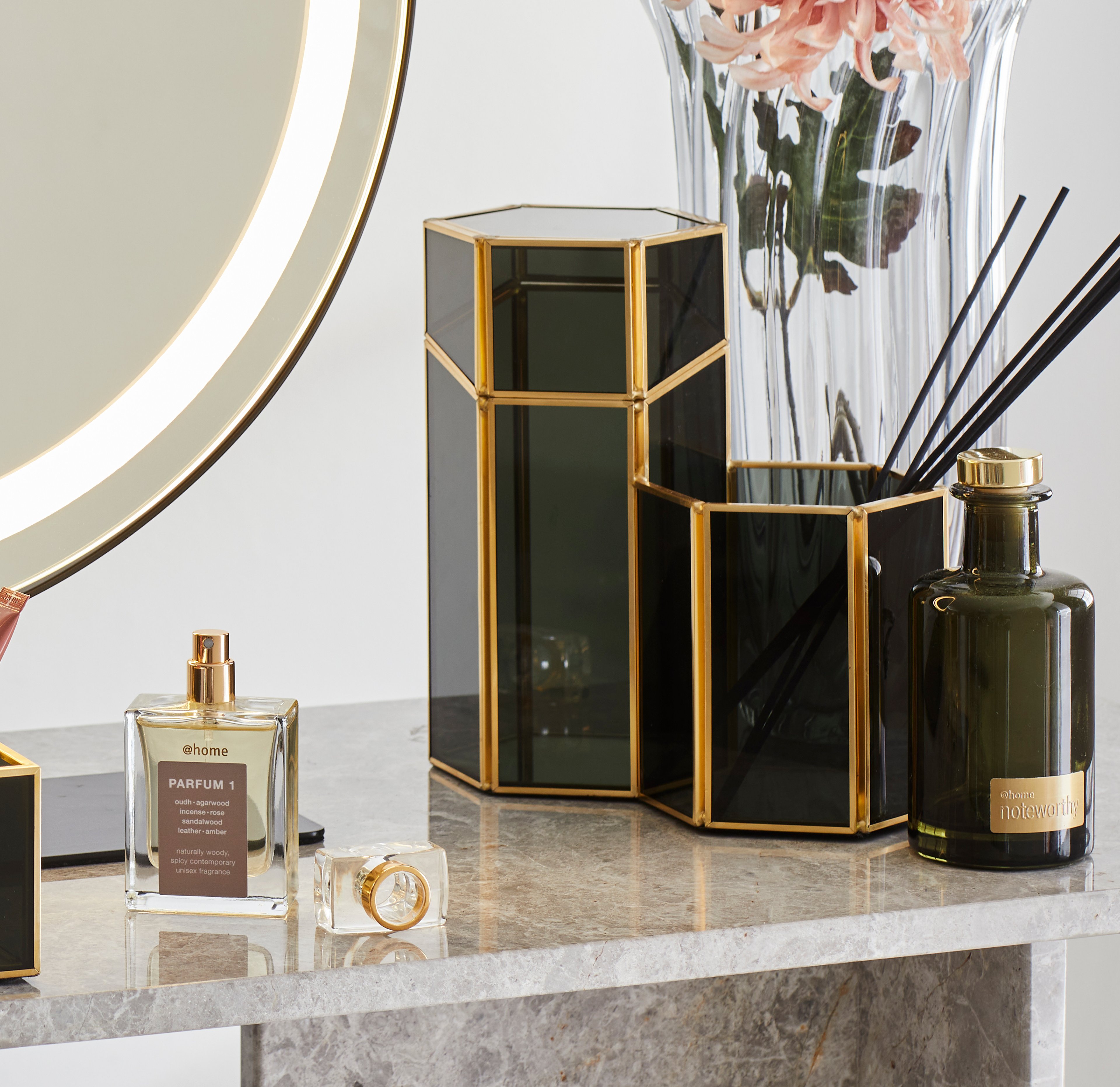 Incorporate mirrors to give the illusion of more space, and add pops of personality with a few carefully chosen accessories like framed prints or flowers for some greenery.