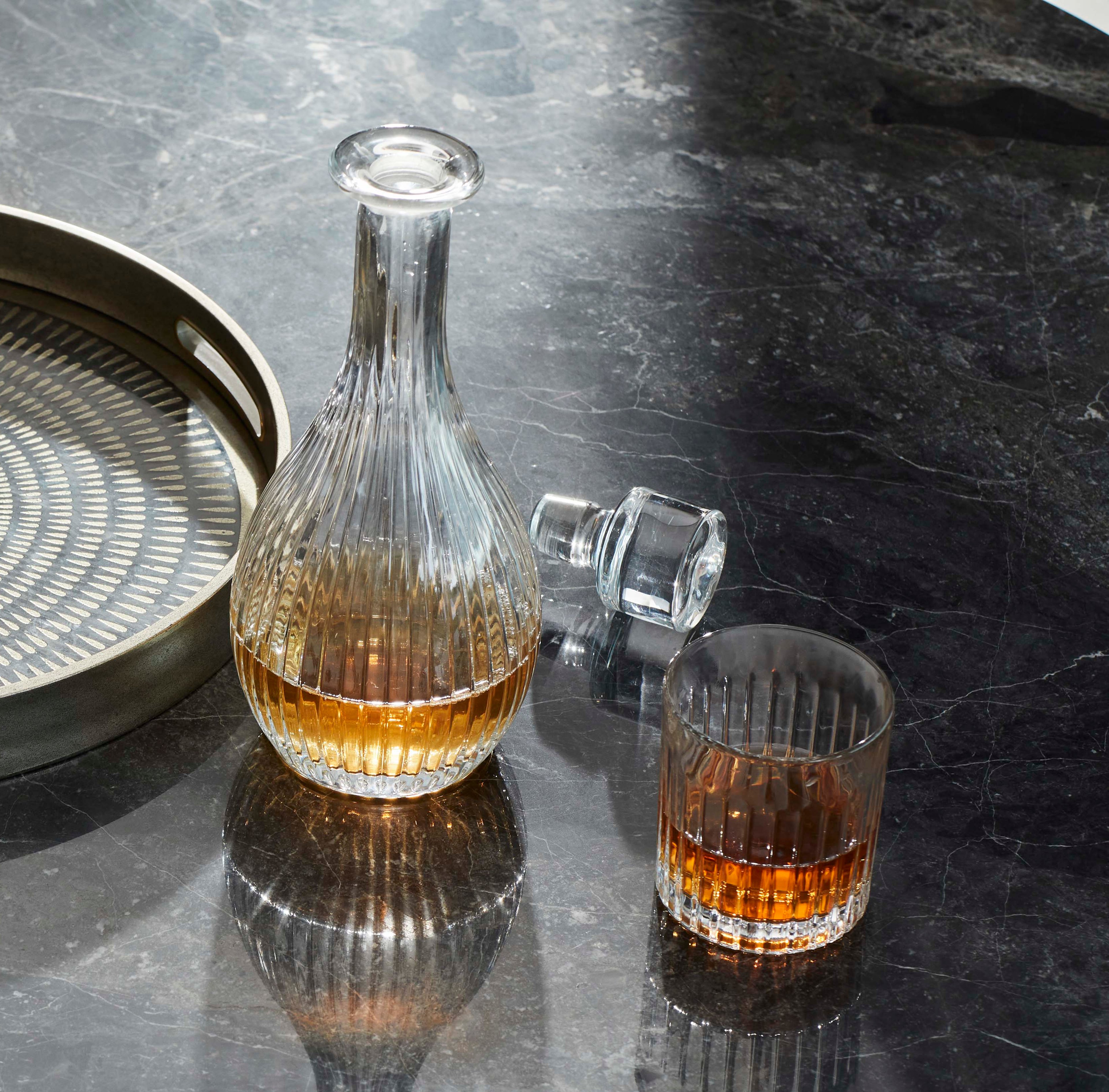 Cut glass adds timeless elegance to your cocktail bar with its intricate patterns that reflect light, have a more luxurious feel, and heirloom quality that make it perfect for elevating festive drinks.