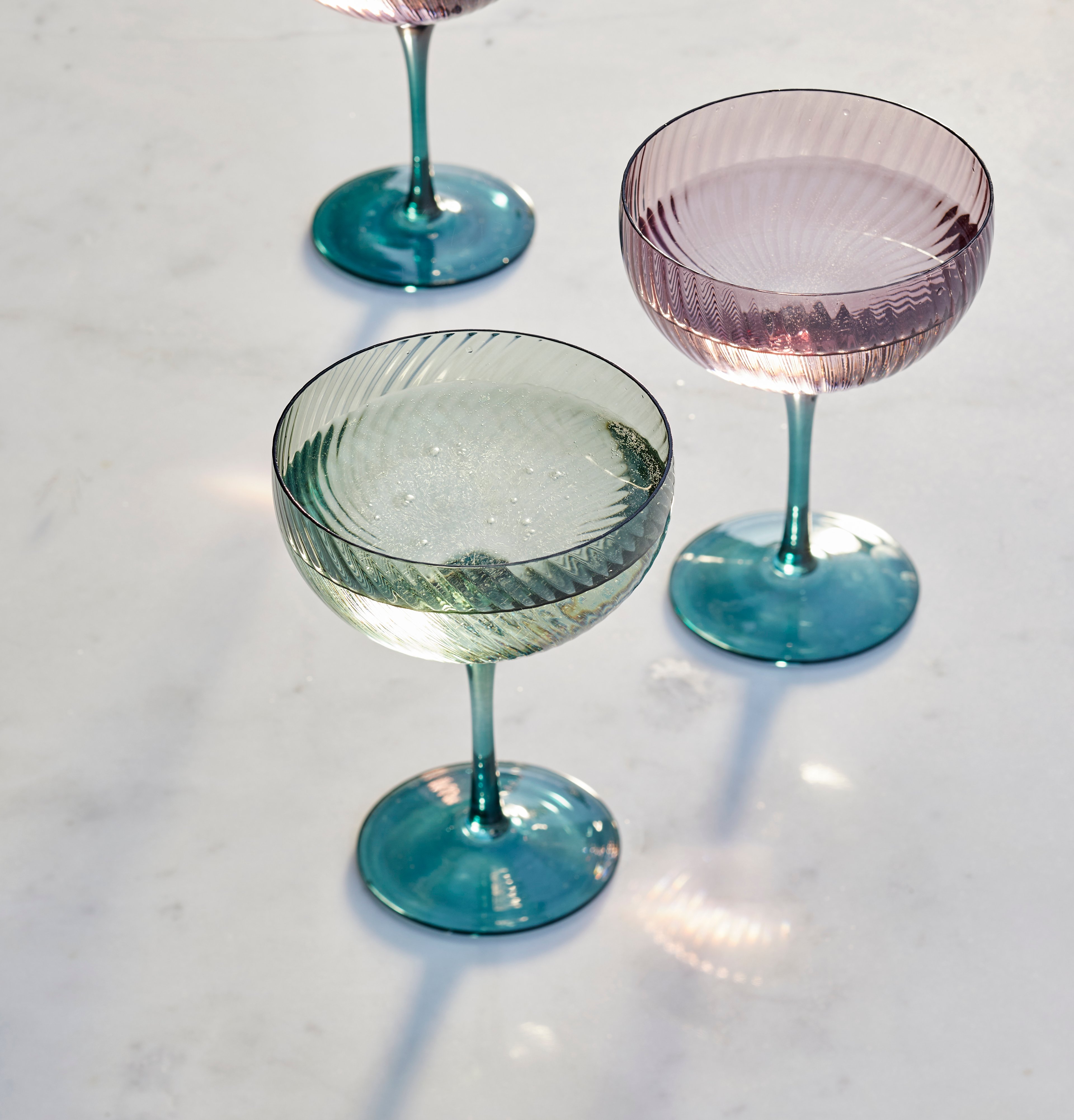 Serve your signature drink in style with the Cosmic Two Tone Cocktail Glass. These handmade ribbed two-tone cocktail glasses bring a sense of occasion and a playful eclectic feel to the table.