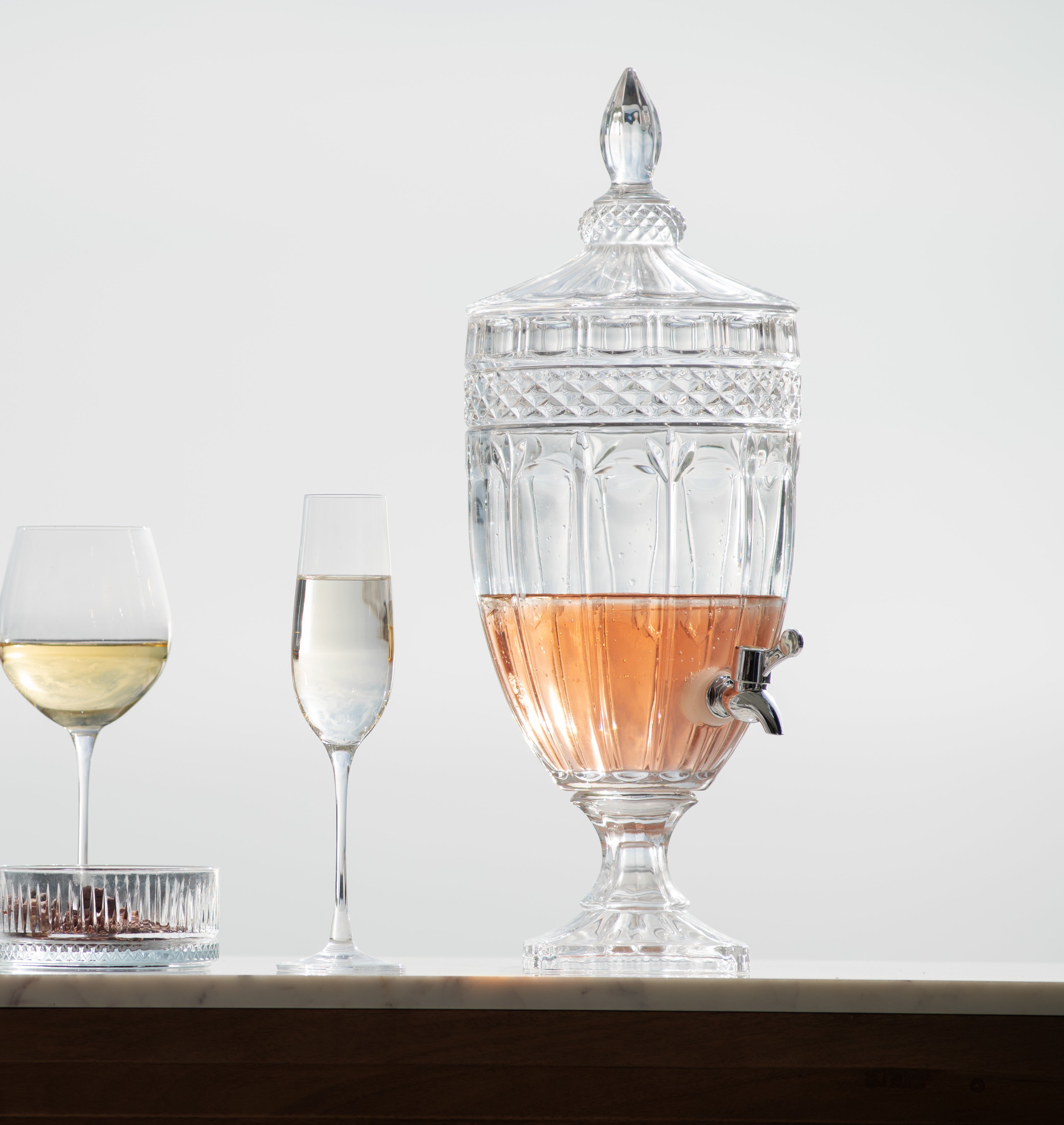 Serve water, juice, punches or batch-mixed cocktails in the 5L Victoria Dispenser. Classic and elegant this is so convenient for serving crowds.