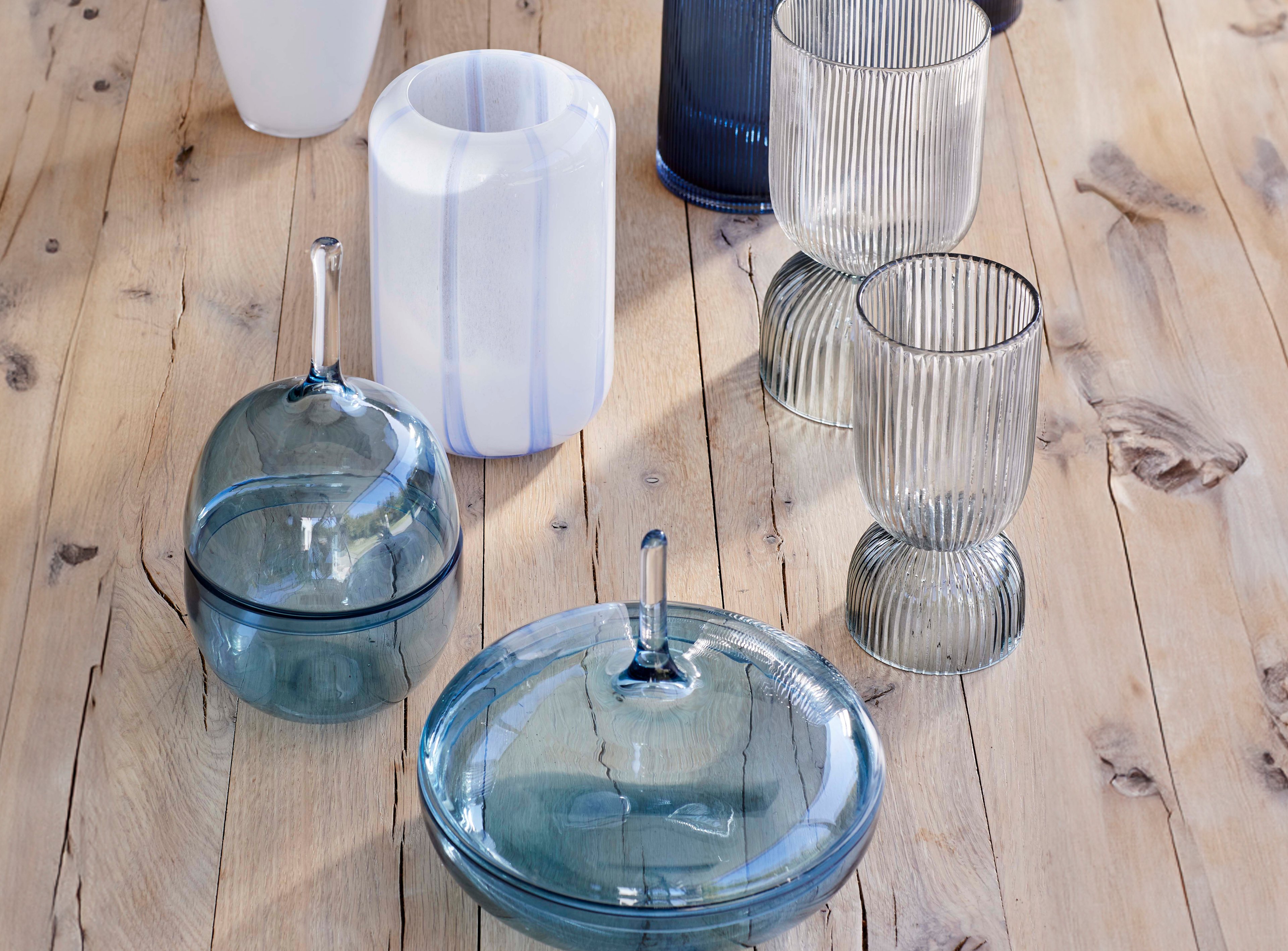 From hand-blown and cut glass, faceted crystal, shimmering , brushed or polished metal these pieces add another dimension to your countertop collections.