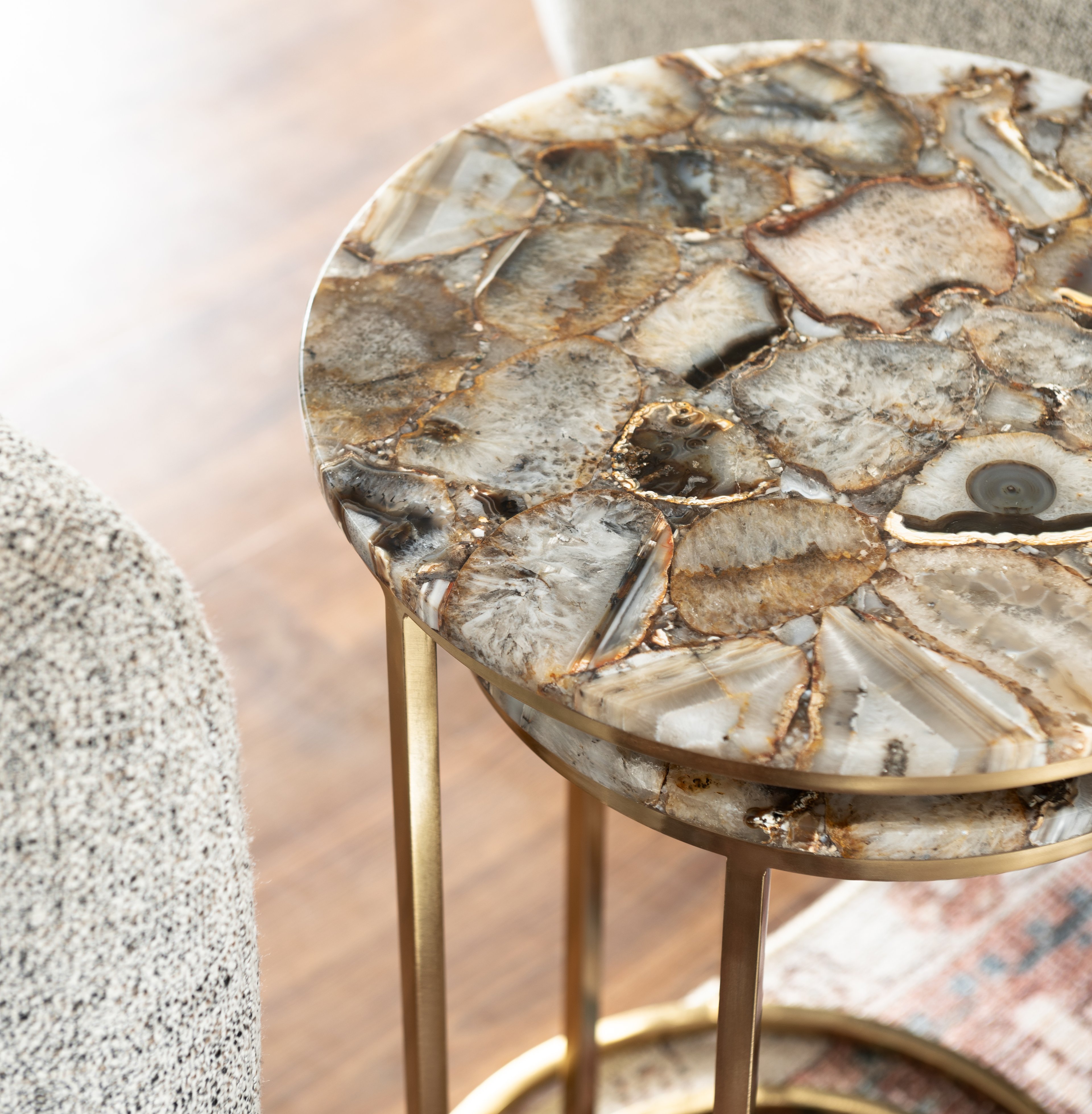 Add a touch of elegance to your living space with the Frozen Set of Two Side Table Agate. Made of marble and brass plated metal, stylish and perfect for adding a sophisticated look to any room.