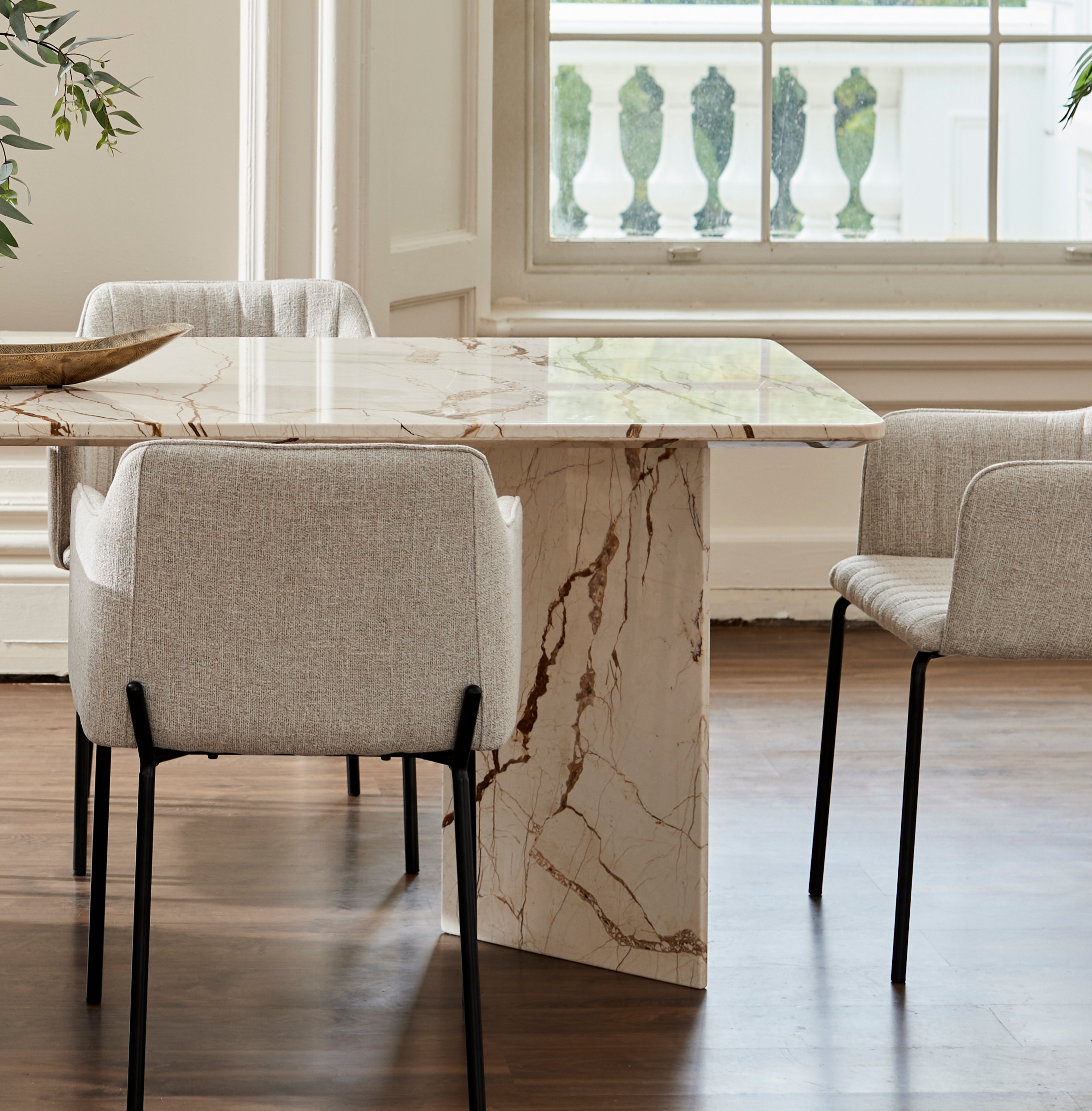 A sleek and sophisticated marble dining table. Marble is shatter resistant and durable, a great choice for your home space. Made in South Africa.
