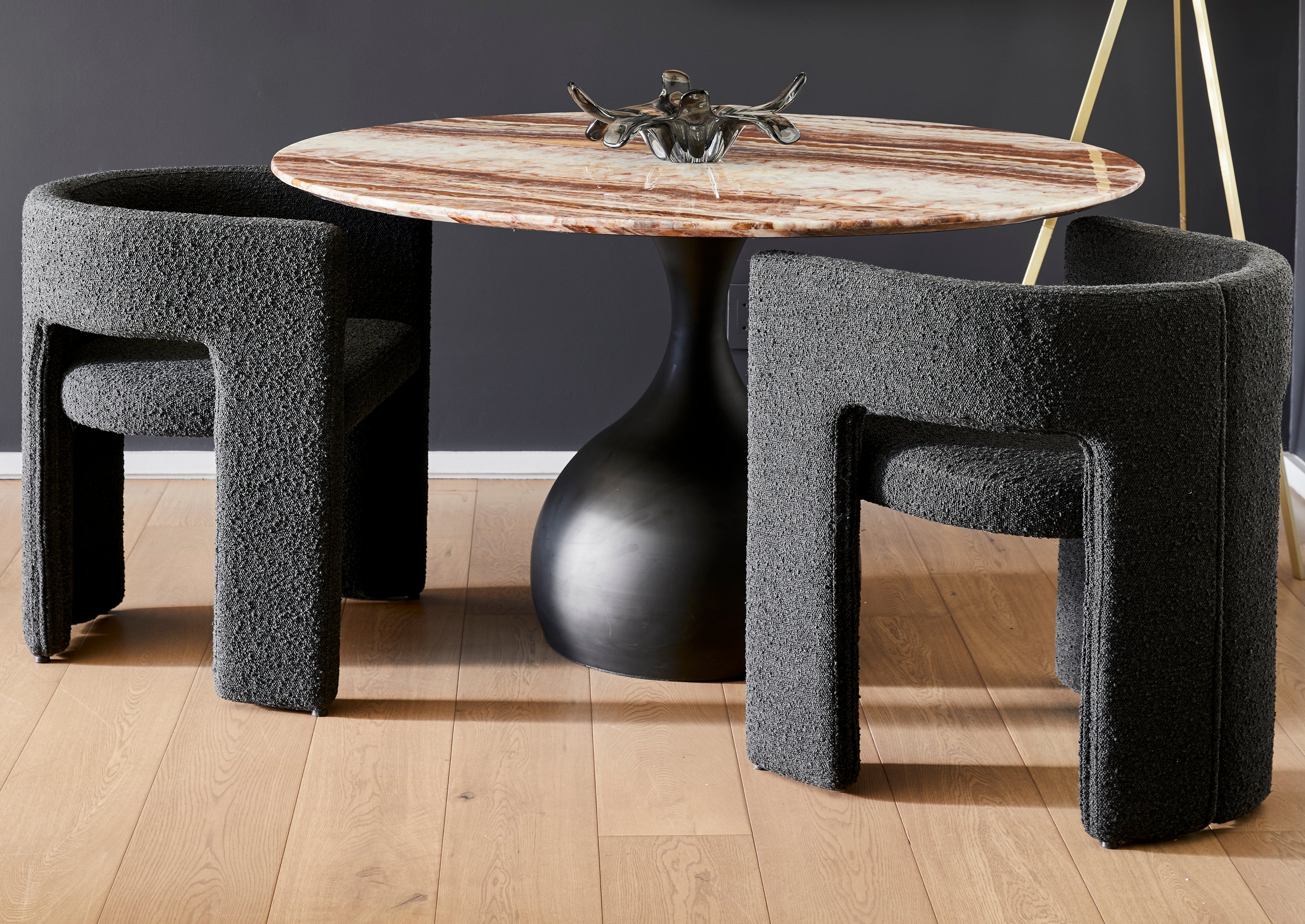 •Seating: Choose bouclé-upholstered chairs or sofas for an on-trend look.