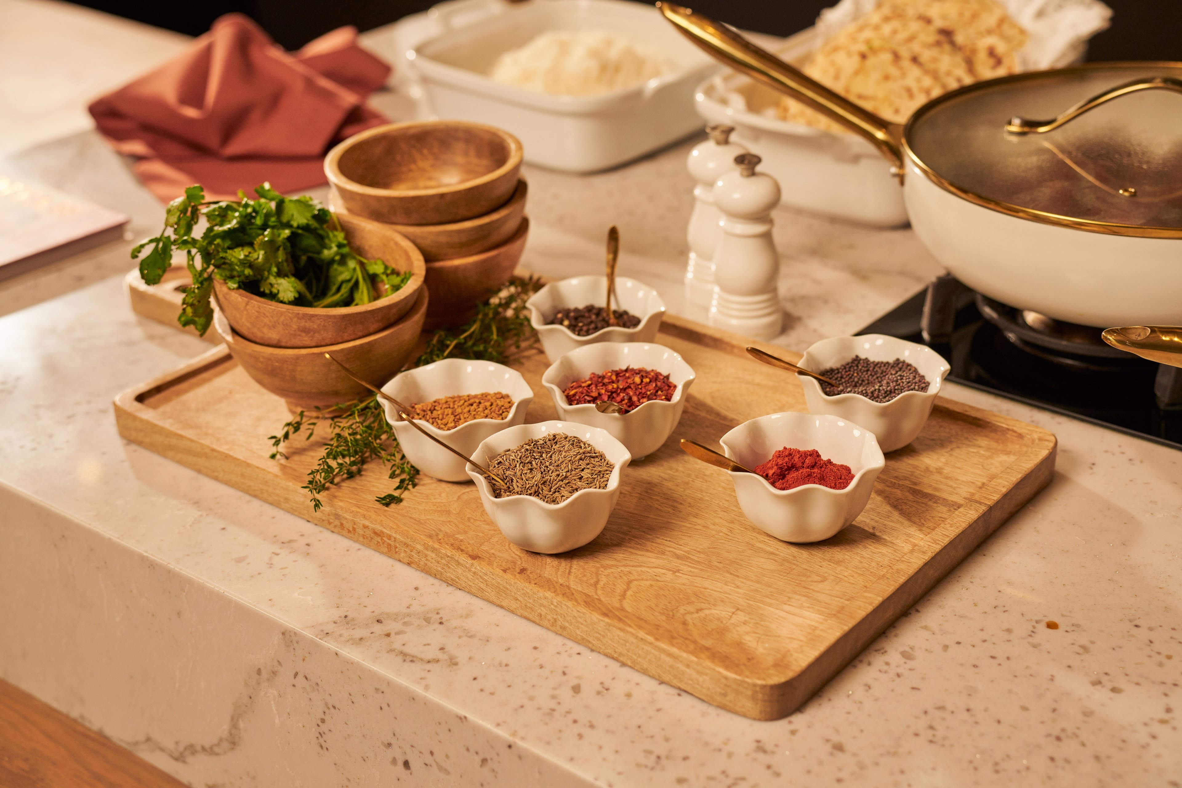 Preparing spice mixes, marinades, and aromatics ahead of time helps streamline cooking on the day. Chopping and portioning ingredients the day before can save valuable time, while multi-pot cooking allows multiple dishes to be prepared efficiently. These small preparations make it easier to be fully present with guests once celebrations begin. Be inspired by our latest catalogue.