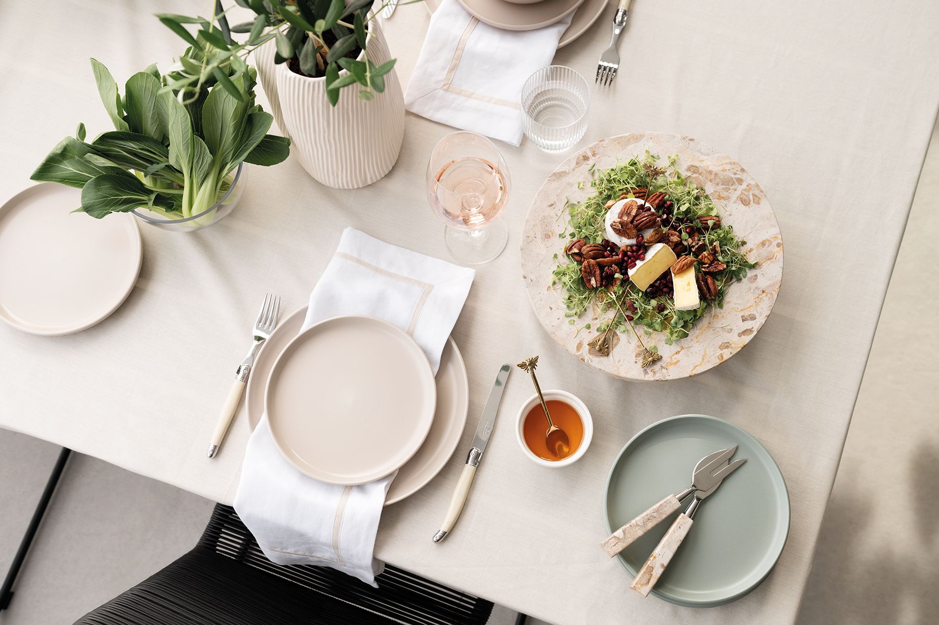 It’s time to reorganise those stacked dishes and tangled utensil drawers. Sort what you use daily from those occasional pieces and give everything a gentle clean (a mild soapy soak goes a long way). Use drawer dividers or bamboo organisers to streamline your setup – and while you’re at it, now’s the time to treat yourself to a new set of stoneware or glassware to welcome the season.