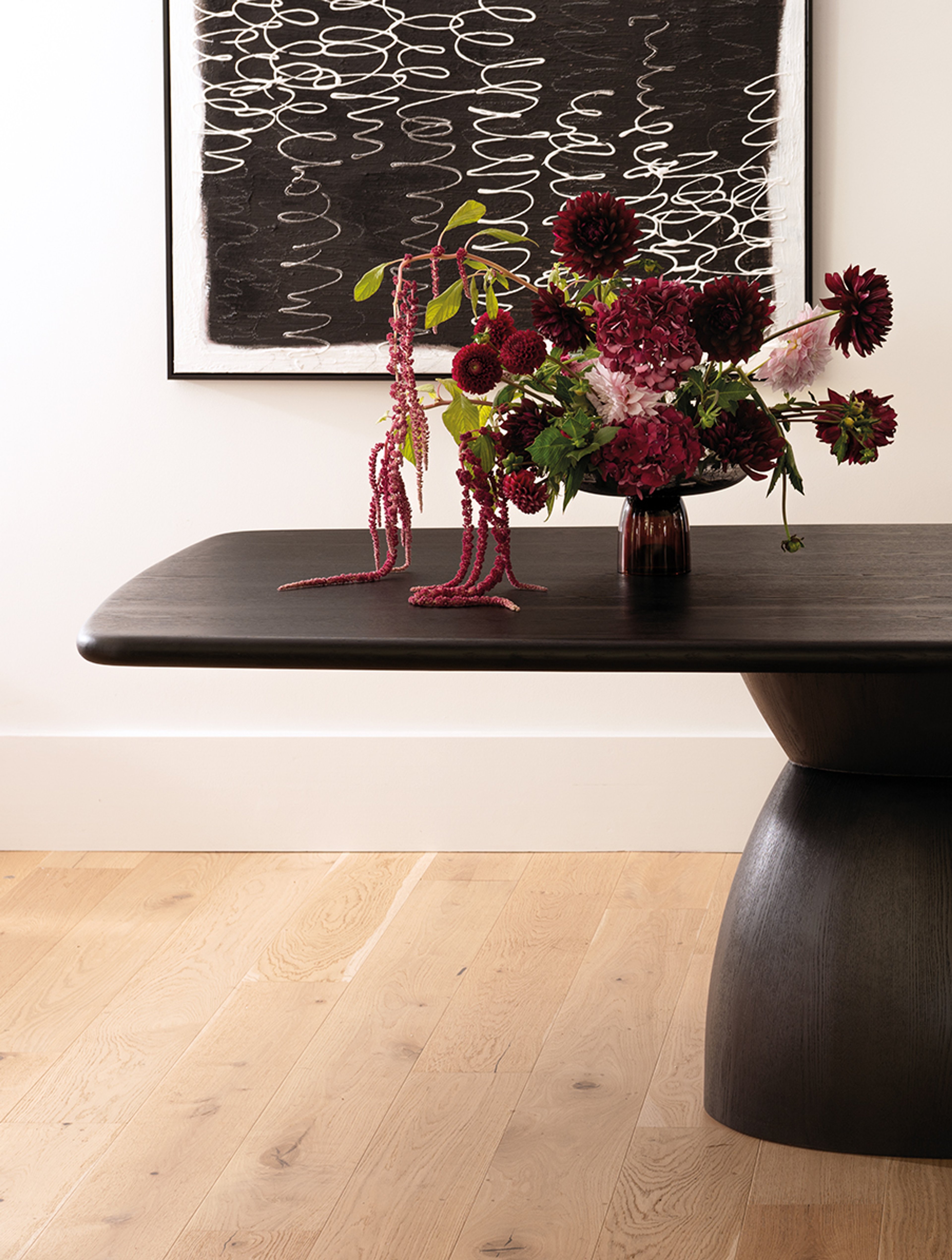 - Choose a table in wood or stone – materials with natural variation.