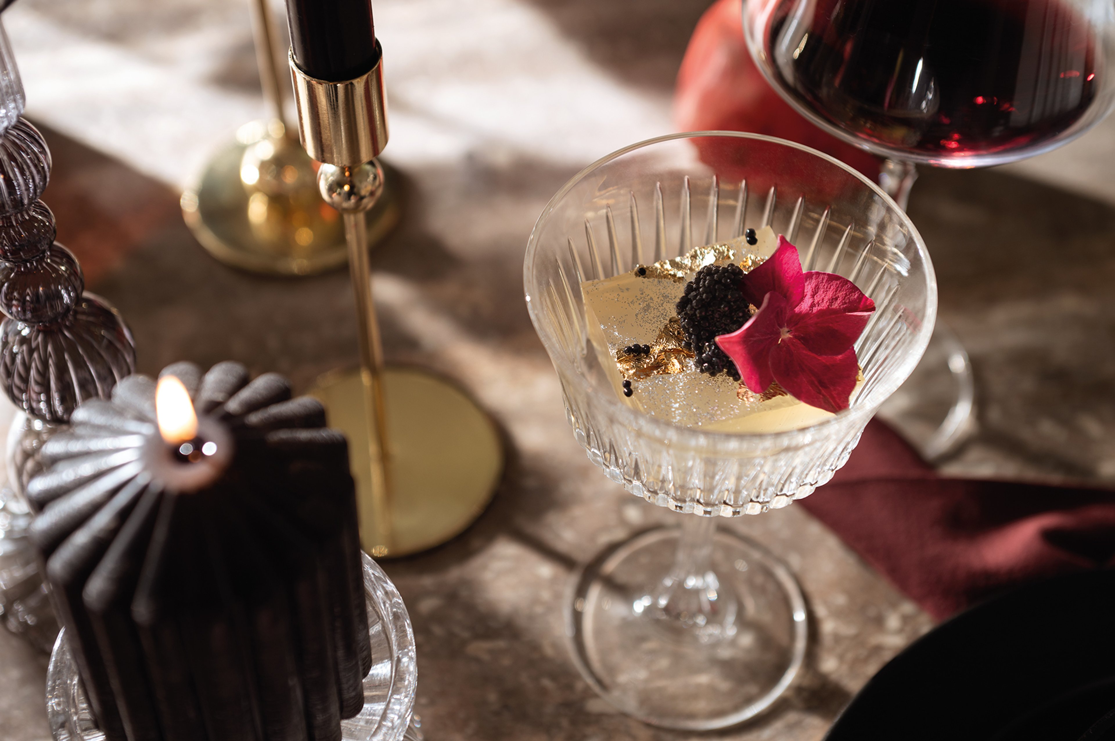 Line a 23cmx 30cm baking dish with parchment paper. Pour the champagne mixture into the dish and refrigerate 30 minutes until chilled but not set. Sprinkle the glitter or gold leaf over the mixture. Return to the refrigerator and chill another 30 minutes until fully set.