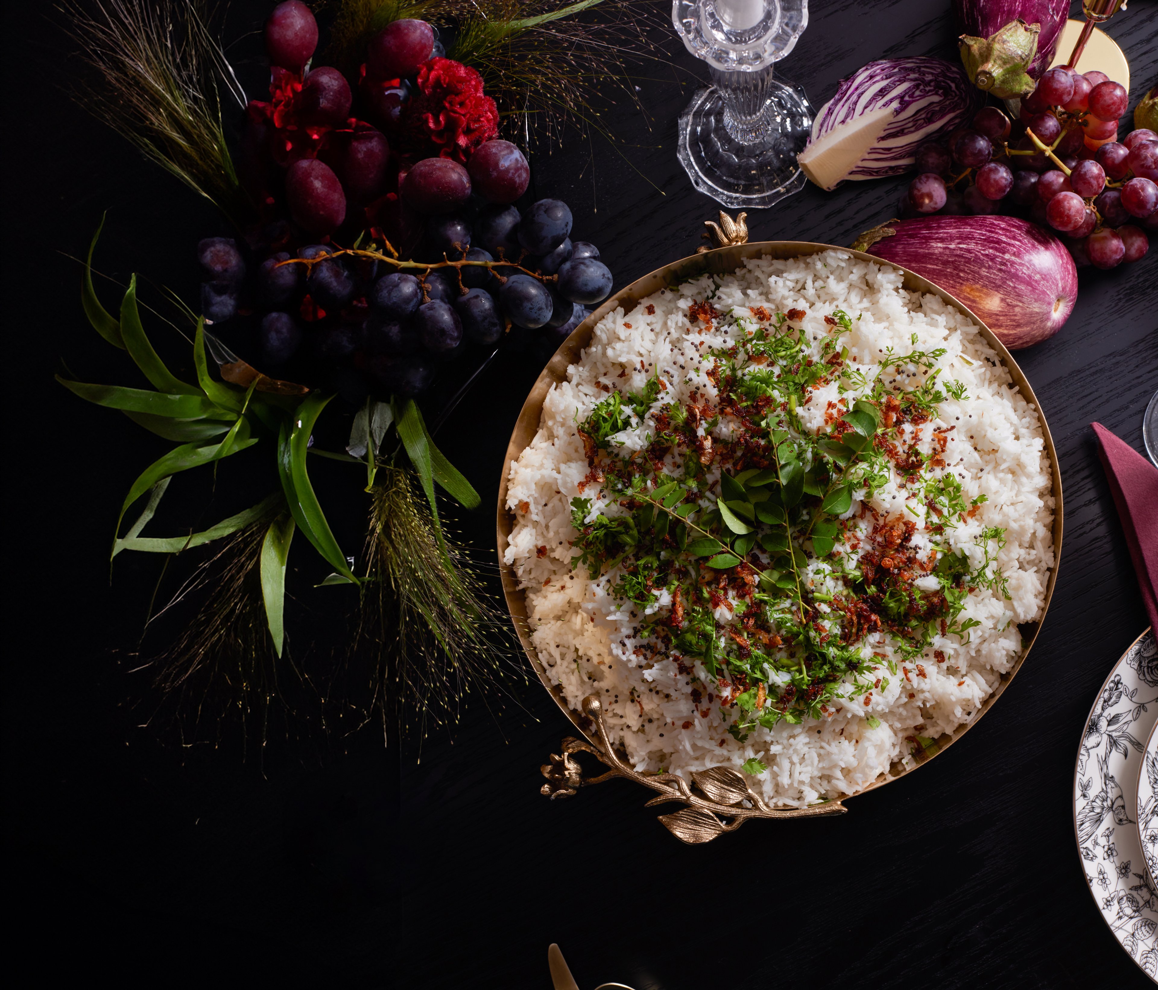 Lightly brown the coconut shavings and toss into the rice with freshly chopped coriander.