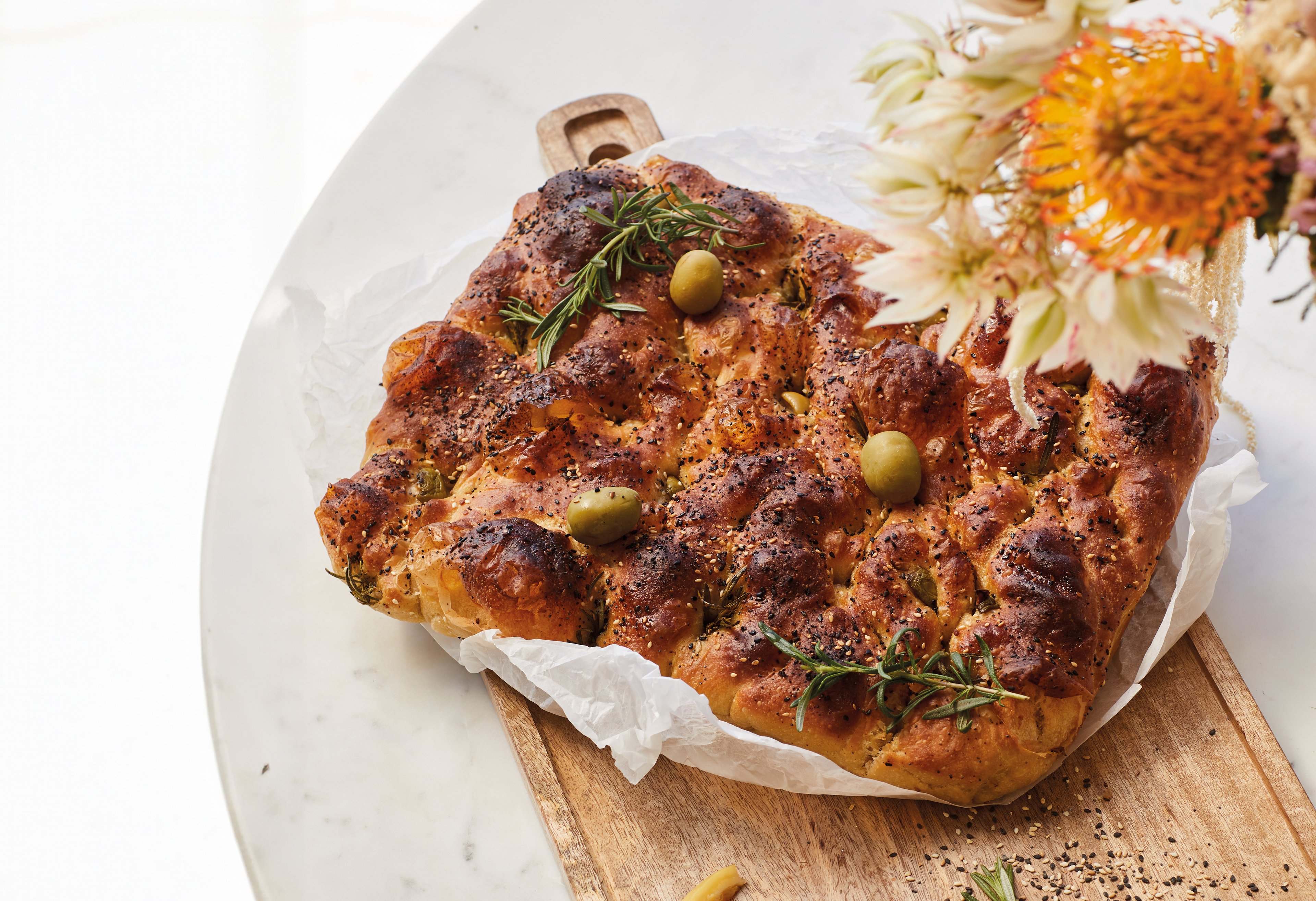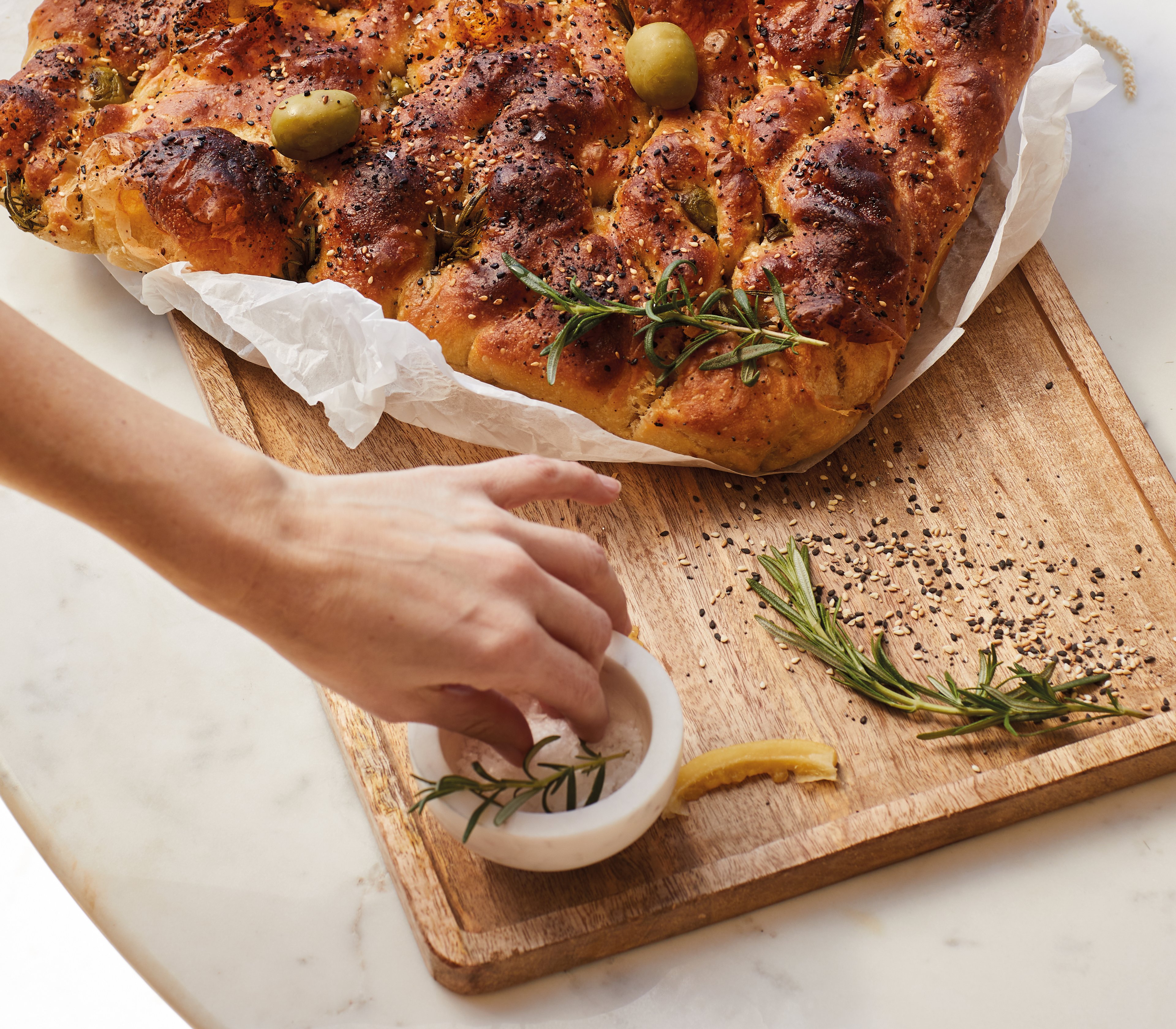 I always bake my focaccia for about 18-22 minutes in a 220C/430F oven. I bake it on the lowest rack in the oven because I think it helps to crisp the bottom of focaccia and prevent the top from burning. If you have a pizza setting in your oven, use that; the main heat source will come from the bottom, which I think is ideal for baking focaccia. Check the focaccia after 18-20 minutes (it might still need more time!) and remove from oven when it’s reached a deep golden brown colour. I've learned that every oven is so different so don't worry about overbaking it if it takes closer to 25-28 (or more) minutes in your oven. The interior will still remain soft! If this is the case and it takes on the longer side, even up to 35 mins, I’d recommend upping your oven temp for the next time (turn up by 10-20 degrees), it could just be your oven runs a little on the cooler side.