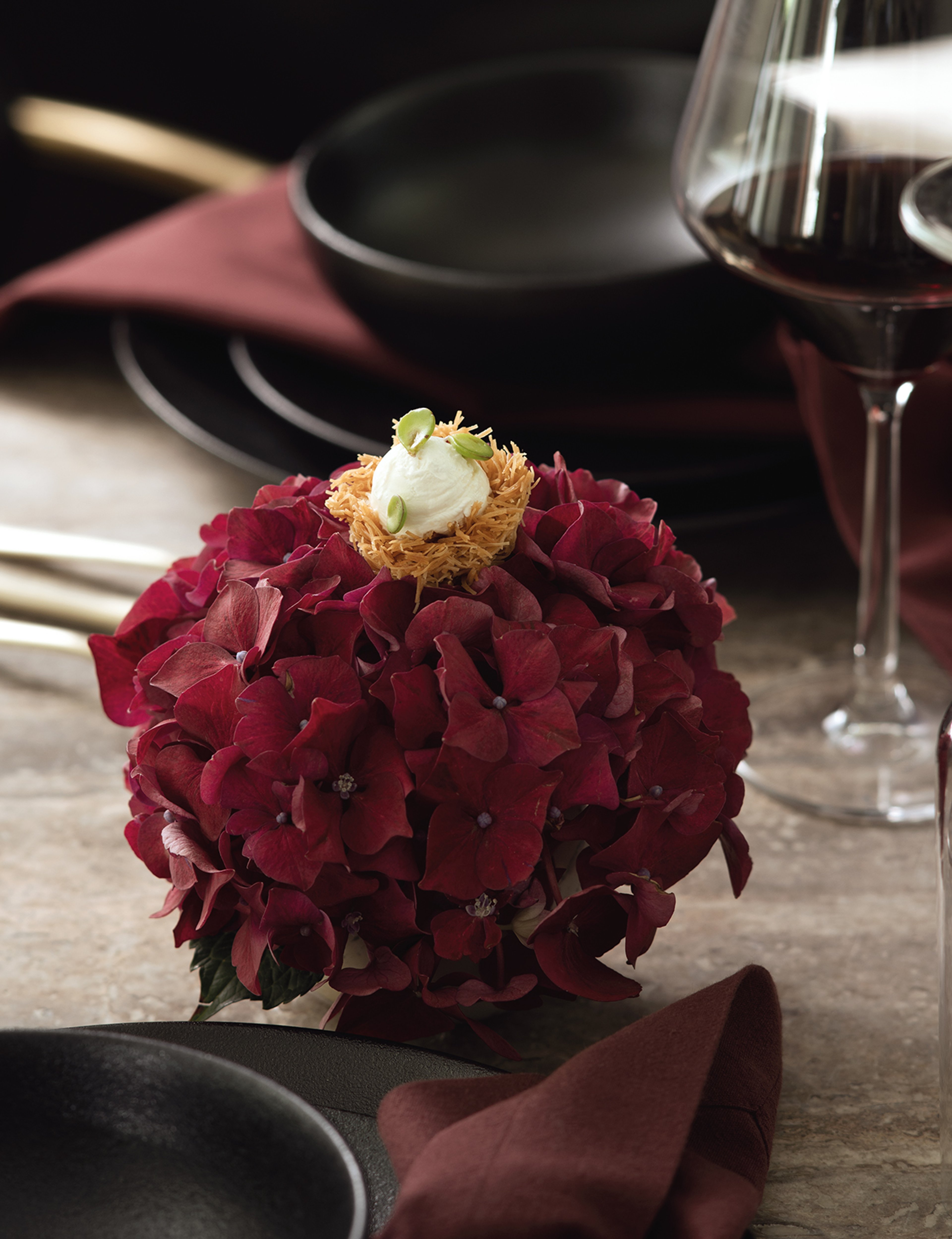Prepare the nests by untangling kataifi in a large bowl (it doesn't have to be perfect, just no clumps). Drizzle the melted butter over the kataifi and toss to coat completely.