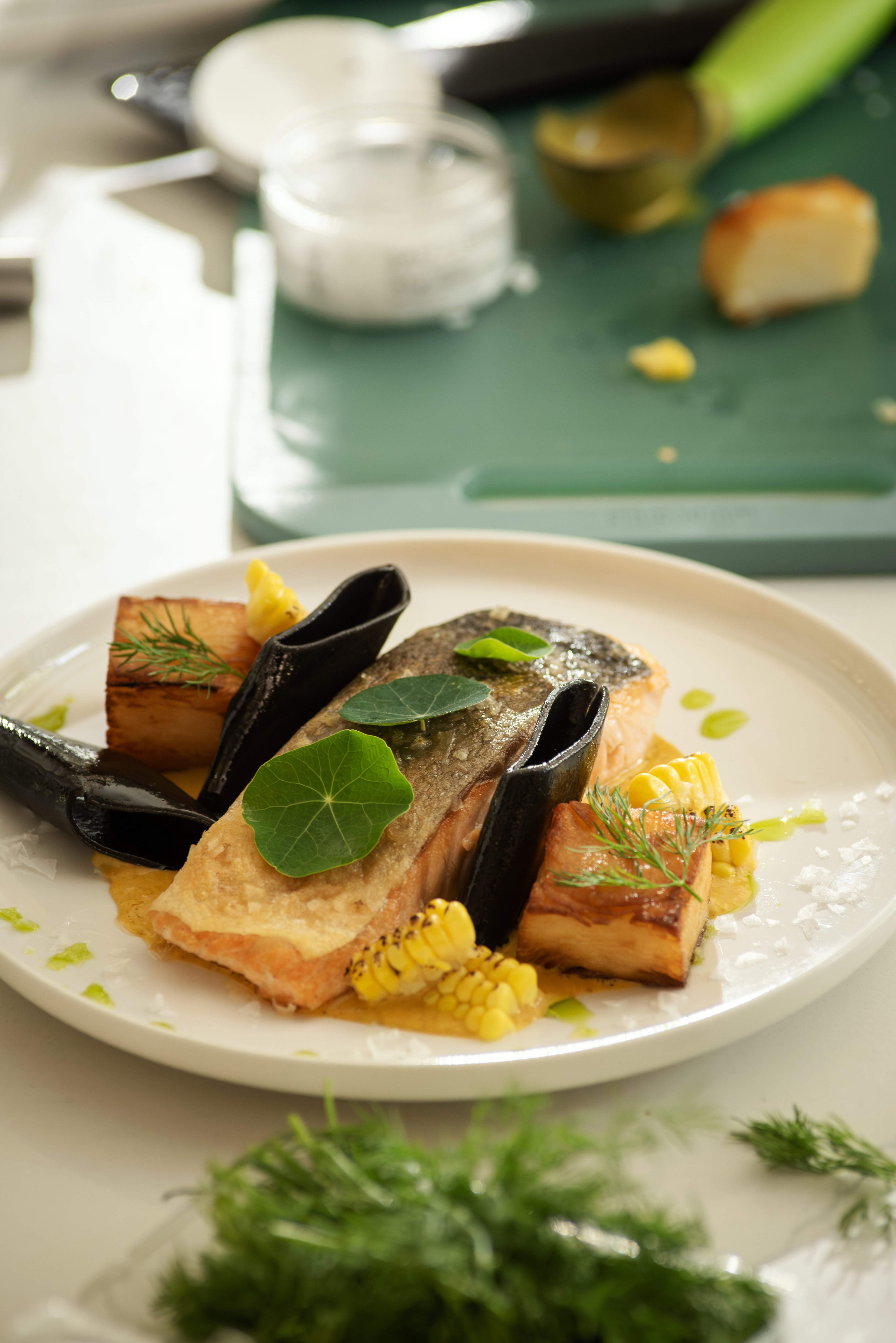Cook the skin side for 2 to 3 minutes until it's crispy in the centre and golden. Lift up to check.