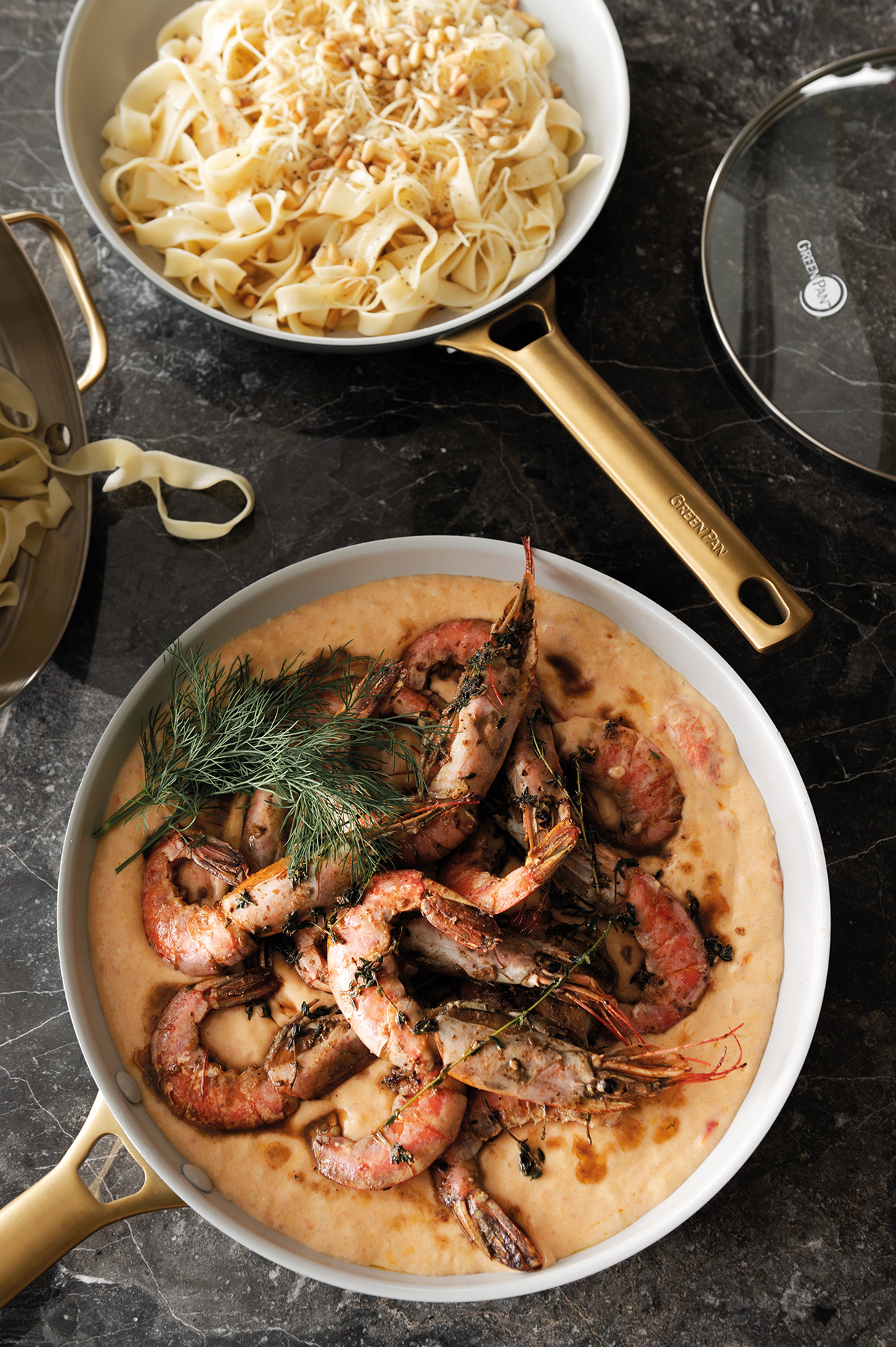 Divide the pasta between four bowls. Top each with the cooked langoustines and spoon over some of the cooking butter.