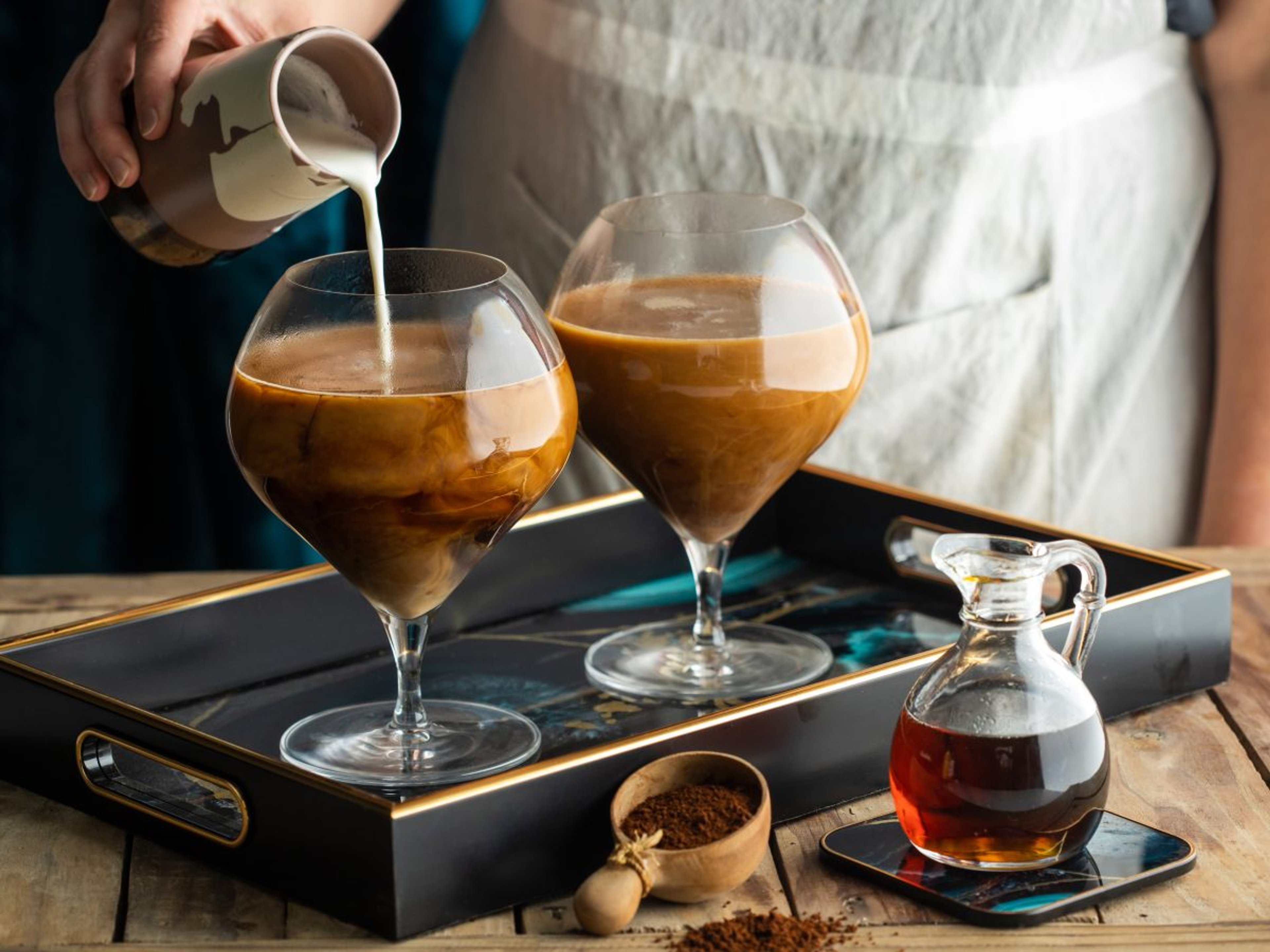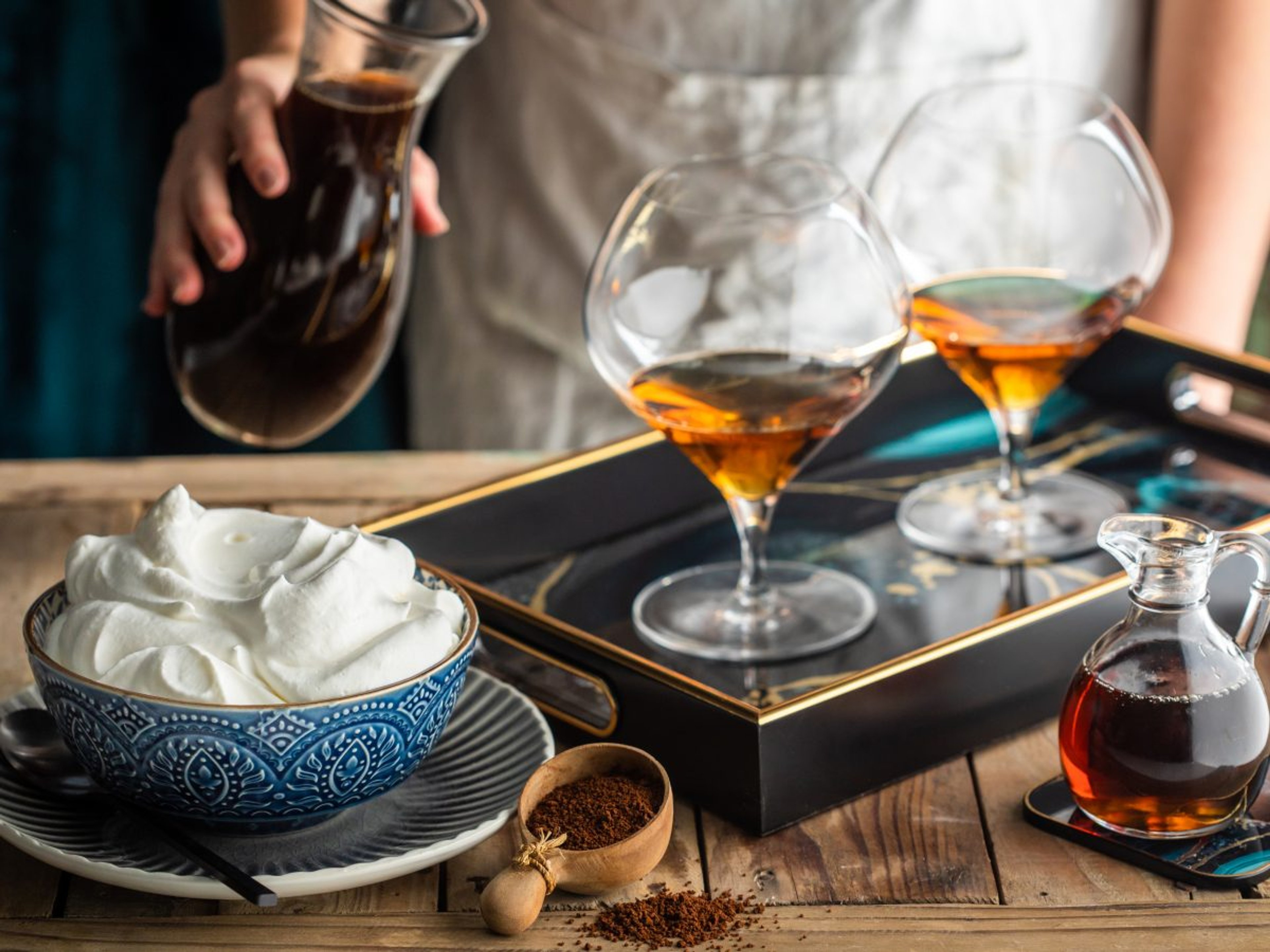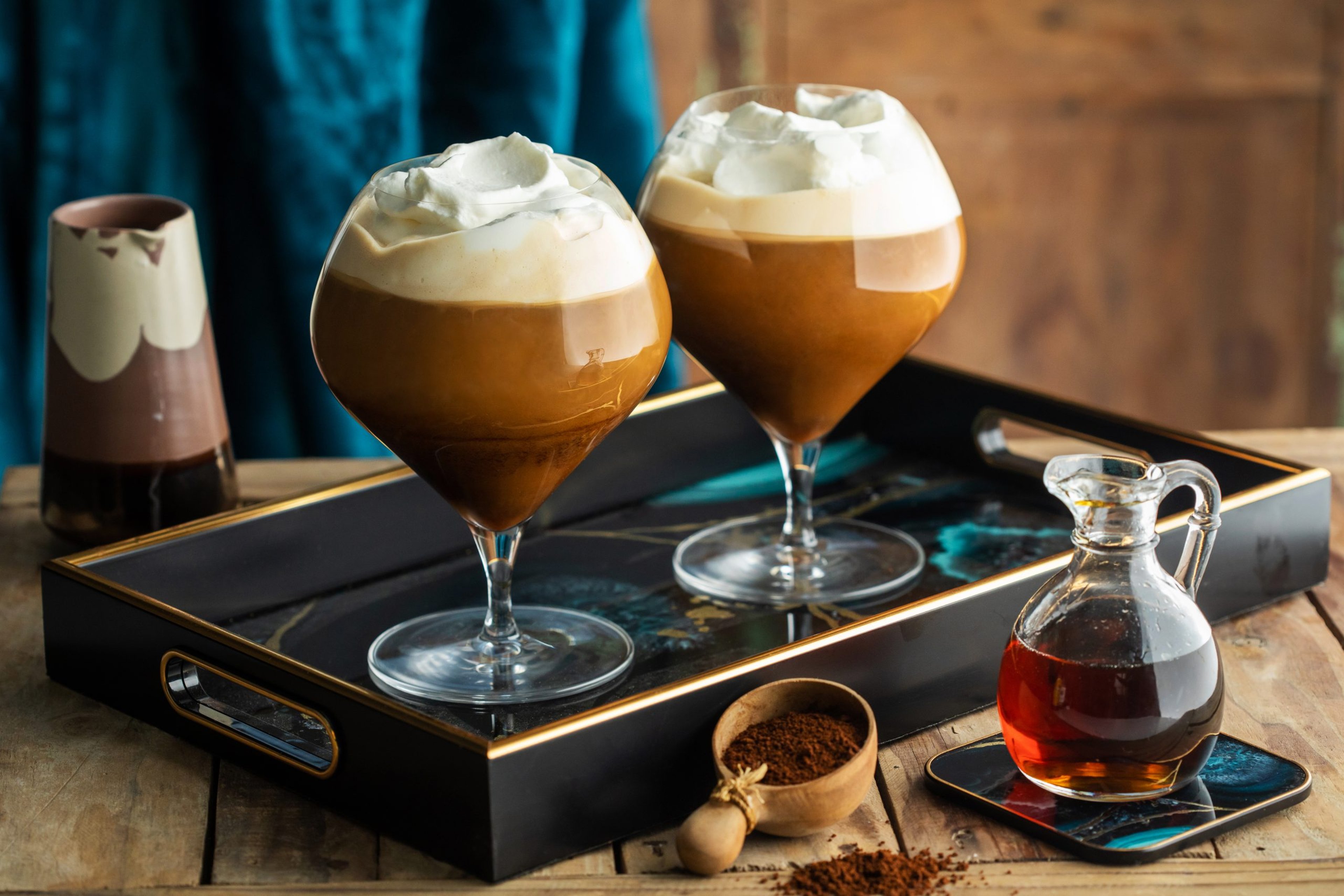 Combine the warm coffee with the Bourbon, Kahlua, maple syrup and vanilla.