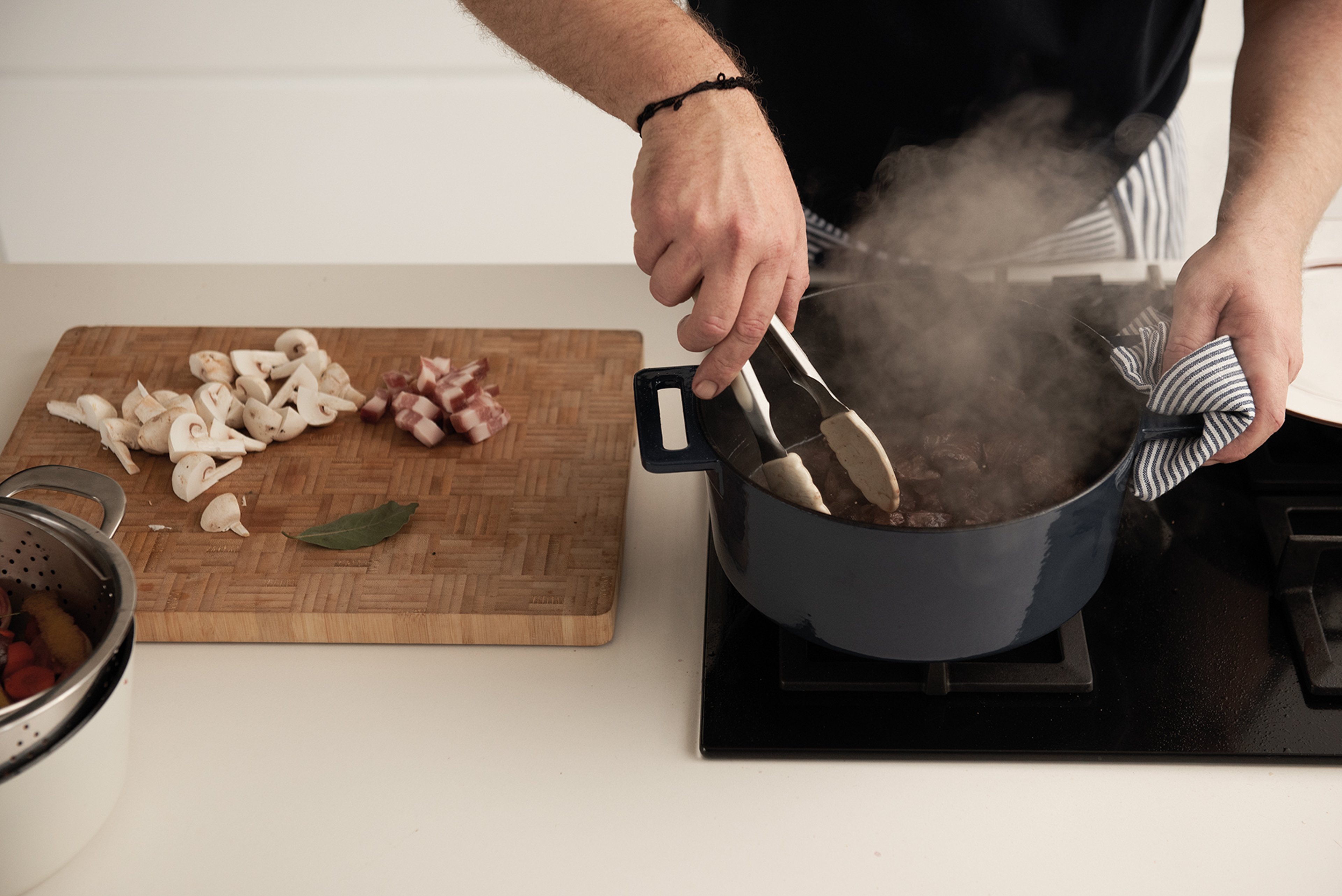 Bring to the boil. Add the mushrooms.