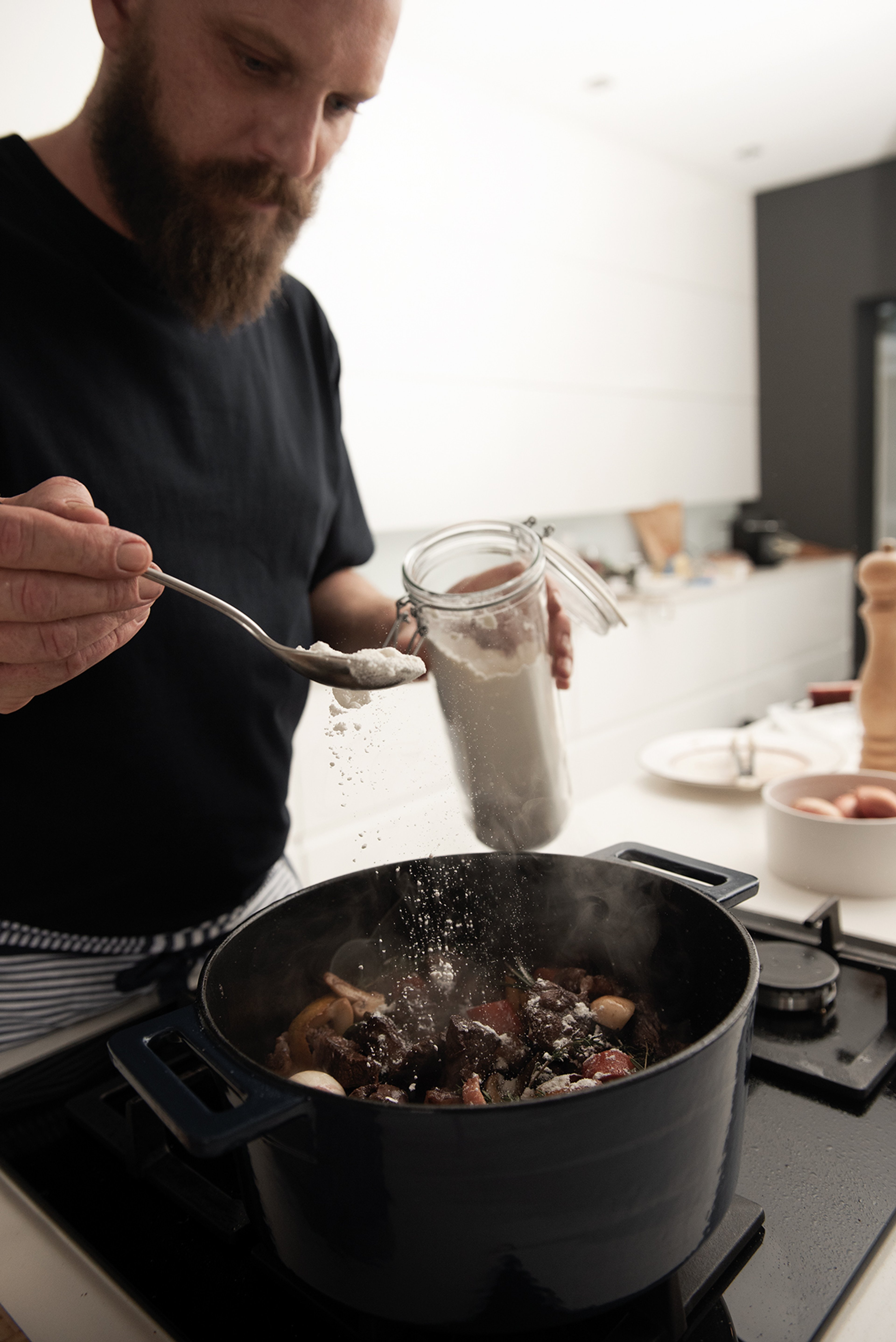 Season the meat with fine salt and colour the meat in two/three times until nicely brown.